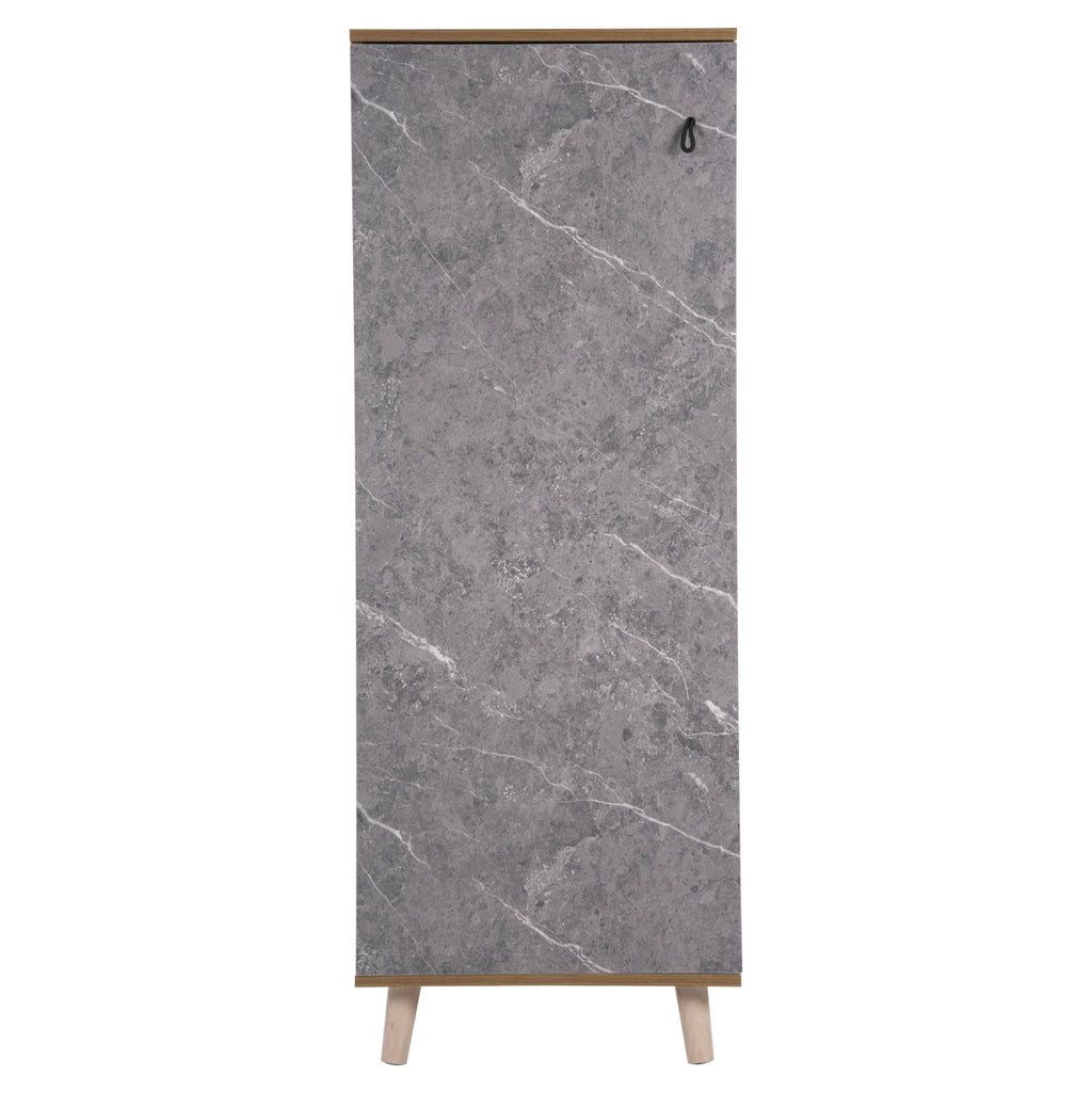 Представяме ви меламинова кутия-шкаф за обувки ALVARO в цвят SONAMA. Това е сравнително висок шкаф с 1 врата с каменна текстура в сивкав тон. Краката са дървени и високи, а вътре има 7 рафта (т.е. 8 нива на поставяне). Нашата цел е да ви помогнем да организирате и подобрите по най-добрия възможен начин всичко, което искате. ТЕХНИЧЕСКИ ХАРАКТЕРИСТИКИ: Габаритни размери: 50х38х135см. Височина на крака: 15 см. Височина на рафтовете: 13,5 см. МАТЕРИАЛ ЗА ИЗРАБОТКА: Шкафът-гардероб е изработен изцяло от 15мм меламин. Меламинът е синтетичен материал, много издръжлив и с голяма твърдост, под формата на листове, които след това се трансформират в ПДЧ чрез пресоване. Краката на шкафа за обувки са изработени от лакирано евкалиптово дърво. Евкалиптът е твърда дървесина, която се счита за една от устойчивите дървесини, които са полезни и екологични. Освен че е абсолютно привлекателна, тази дървесина има много общи свойства с подобни твърди дървесини. Той е много здрав и има висока плътност. Въпреки това е лесен за "работа". Действителният му цвят варира от червеникаво до розово. ПОДДРЪЖКА: Шкафът за обувки е лесен за поддръжка. Неговата меламинова конструкция му позволява да бъде устойчив на абразия, драскотини и петна. Освен това се почиства лесно с влажна кърпа. *Продуктът се доставя несглобен във фабрична опаковка ** Цветопредаването на продукта може леко да се различава от фотографското изображение на вашия екран.