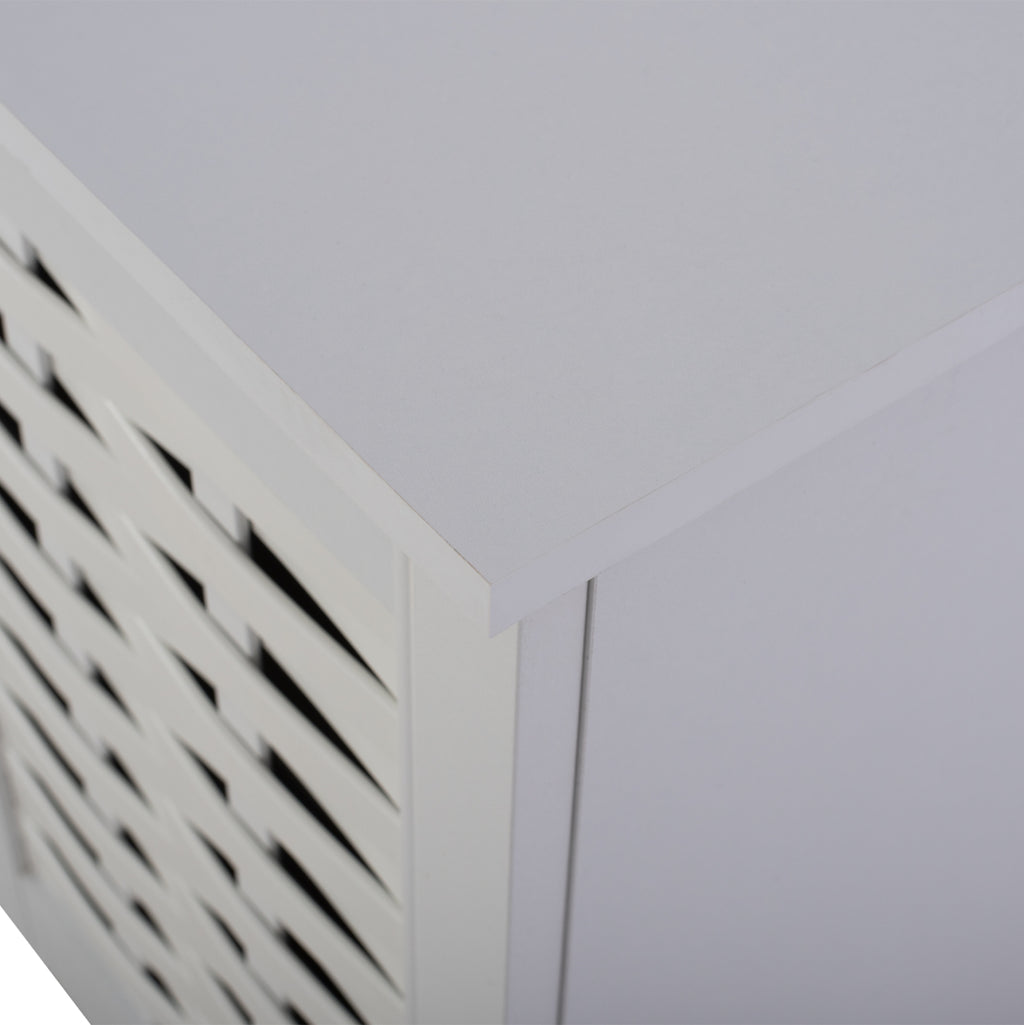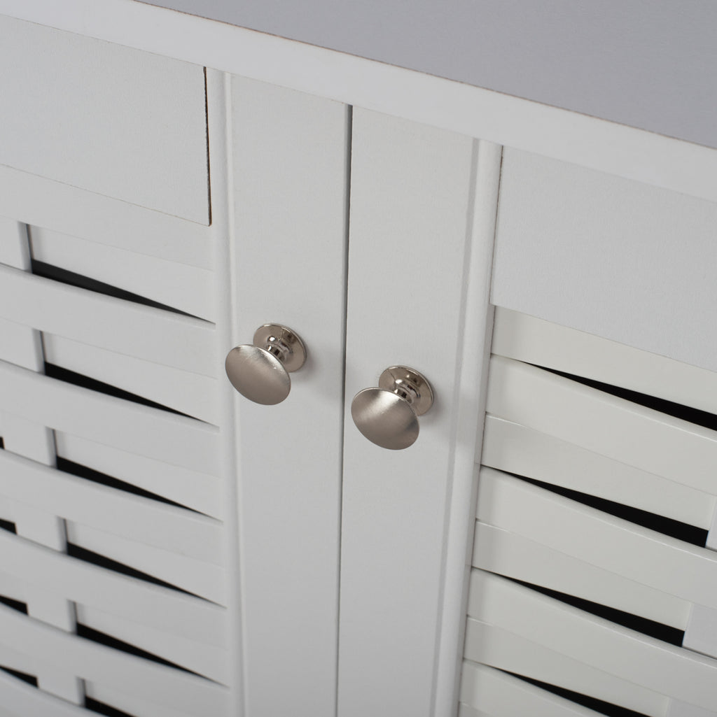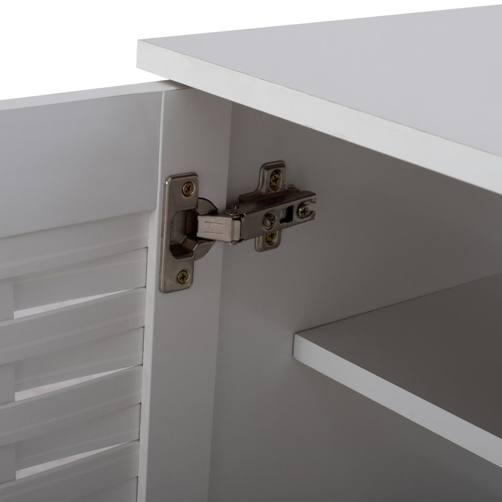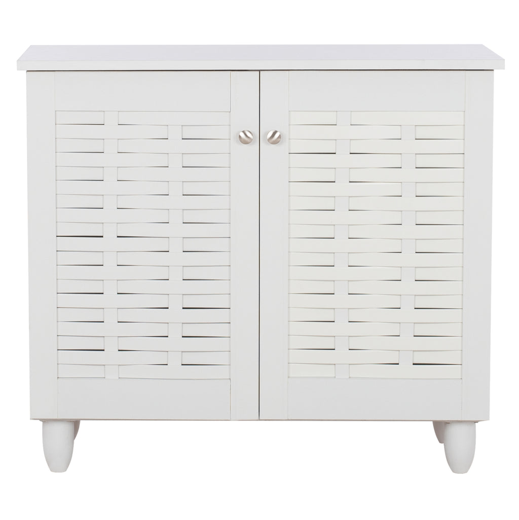 Етажерка за обувки в семпъл класически дизайн, изработена от издръжлив висококачествен меламин, в бял цвят. Има две врати и два вътрешни рафта, където те създават три места за съхранение. Също така има вдлъбнатини, за по-добра вентилация на обувките. Продукт, съчетаващ ергономичност и практичност, предлагащ място за съхранение за организиране и подреждане. Размери: 77X34X67.5см. Продуктът се предлага разглобен във фабрична опаковка.