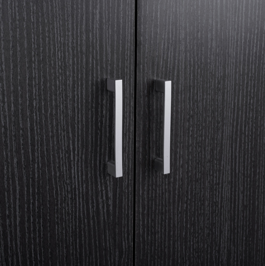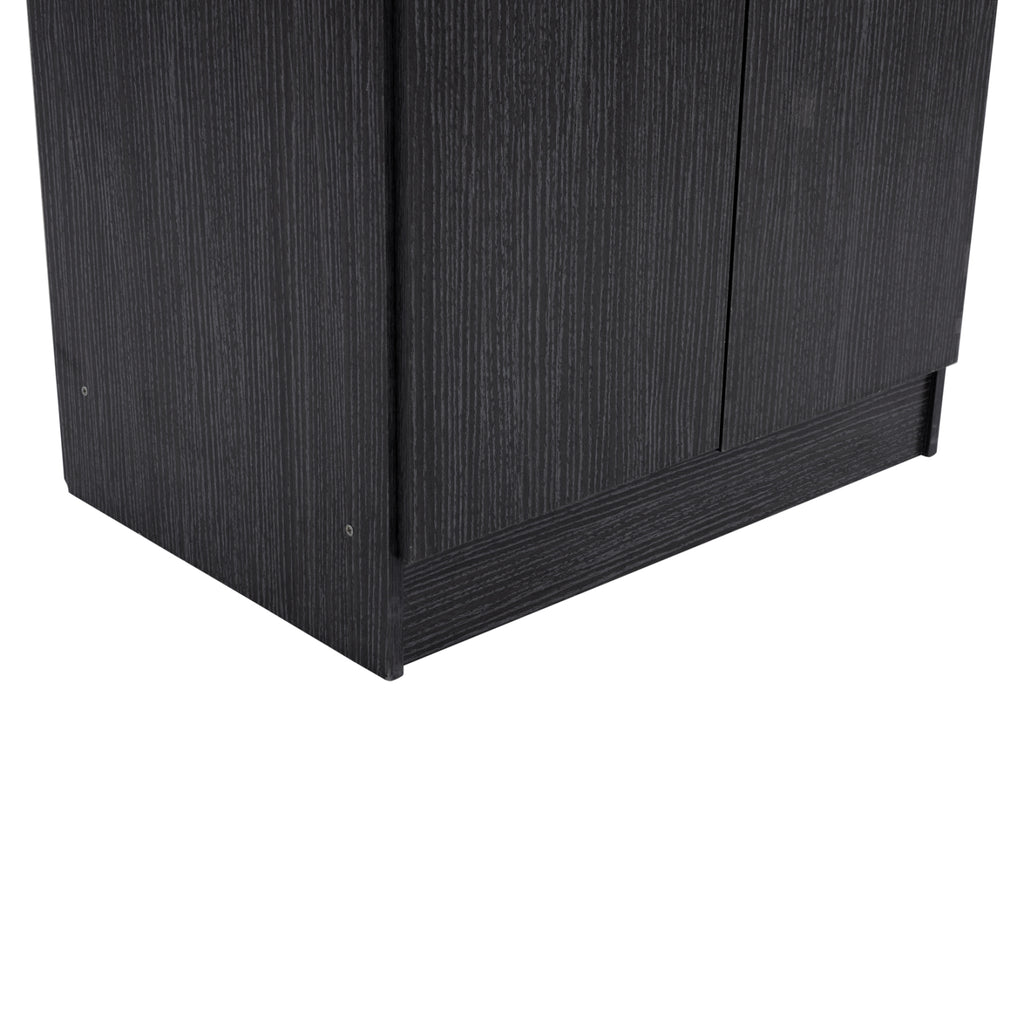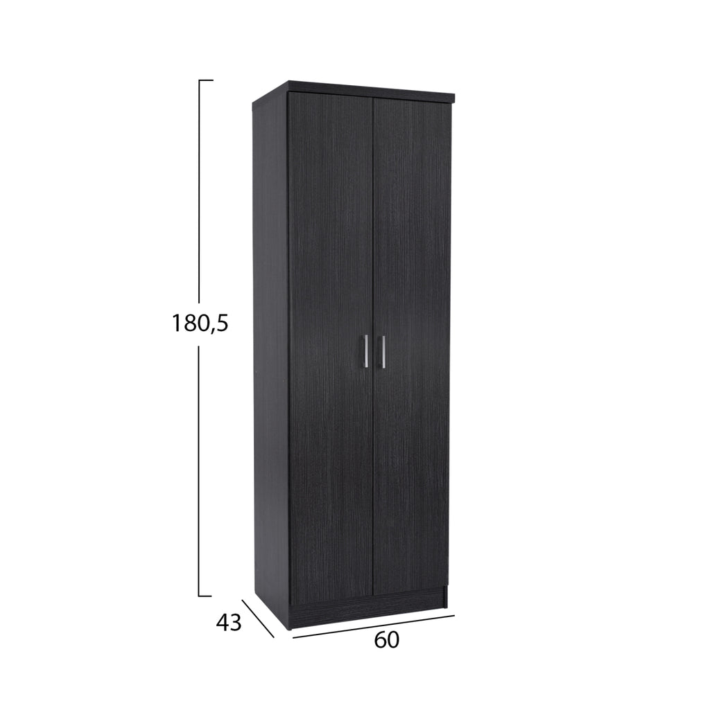 Двукрила меламинова кутия за обувки в цвят Зебрано. Вътре в шкафа за обувки има шест (6) рафта и седем (7) места за съхранение на обувки. Размери: 60х43х180.5см. Размери на рафтовете: 57x40x22 см. Поставката за обувки се предлага в разглобена опаковка с подробни инструкции за сглобяване.
