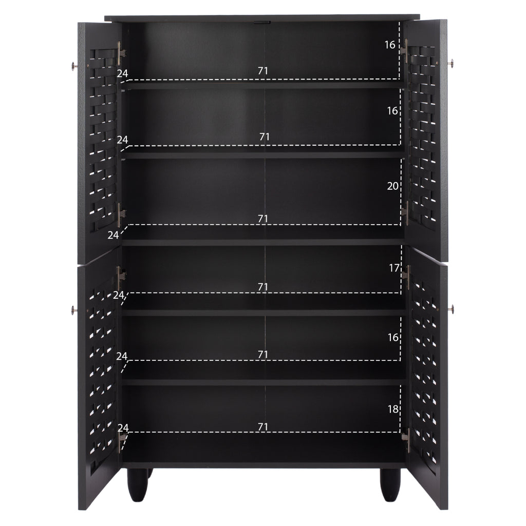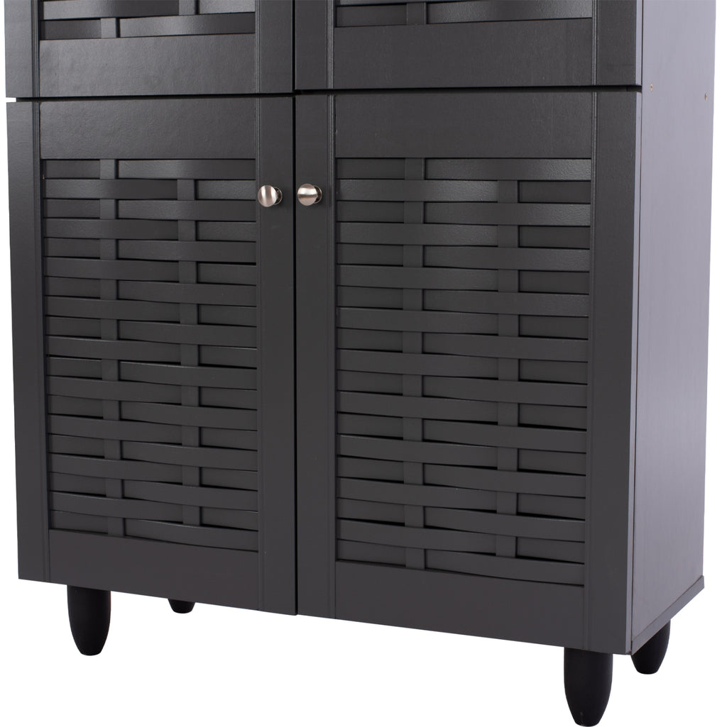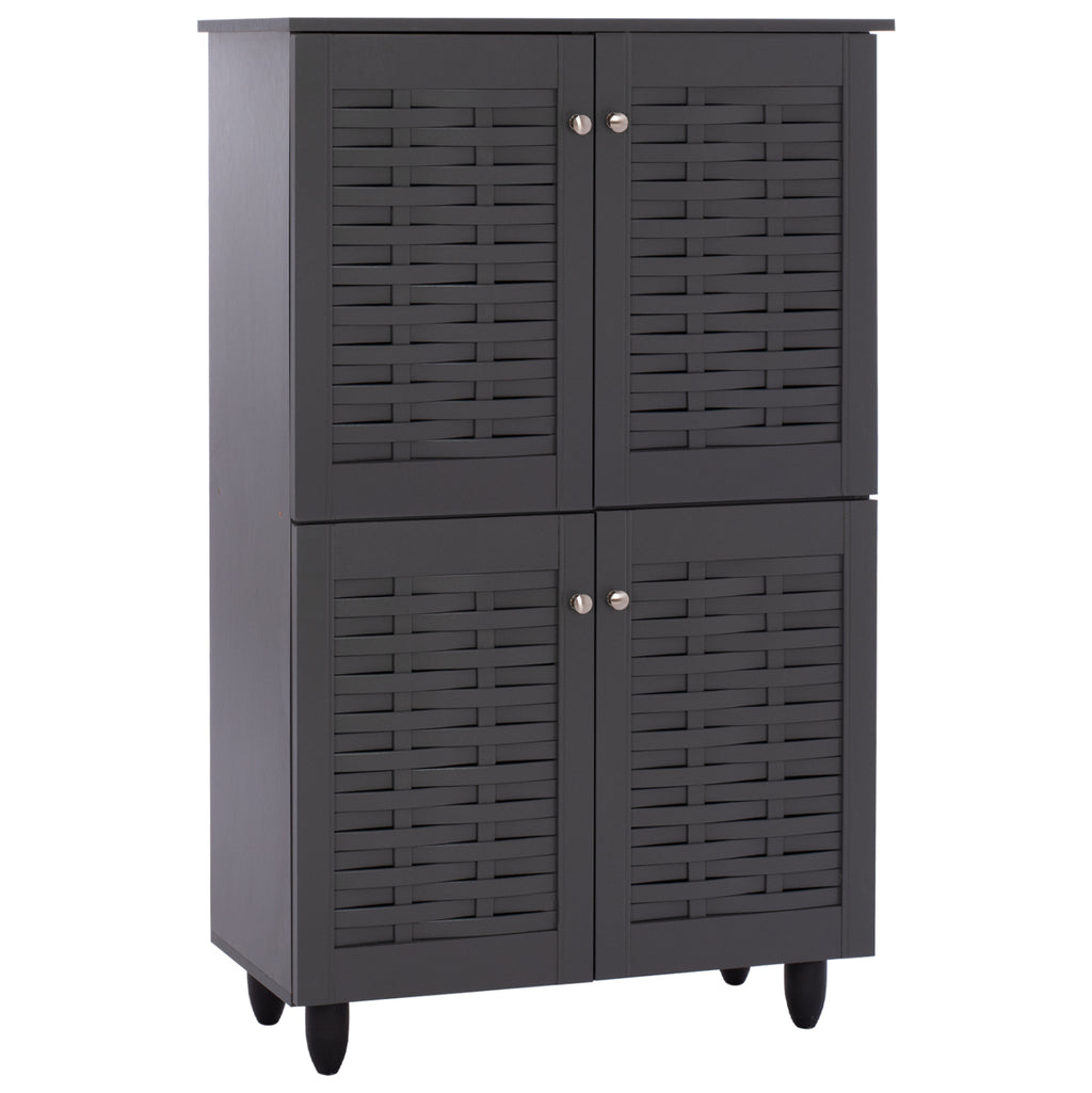 Обичате ли да сте спретнати и чисти?...това е добре, ние също. Представяме ви Шкаф-шкаф за обувки "КАБИРА" в тъмно сив цвят на две нива и 4 врати с метални кръгли дръжки. Нашата цел е да ви помогнем да организирате и подобрите функционалността на вашия дом по възможно най-добрия начин. ТЕХНИЧЕСКИ ХАРАКТЕРИСТИКИ: Габаритни размери: 77x34x123H cm. Размери на рафтовете: 71x24x16 см. (x3) 71x24x17 см. 71x24x18 см. МАТЕРИАЛ ЗА ИЗРАБОТКА: Шкафът за обувки е изработен изцяло от меламин. Меламинът е синтетичен материал, много издръжлив и под формата на листове, които след това се превръщат в ПДЧ чрез пресоване. Краката на кутията за обувки са изработени от пластмаса за специална устойчивост на вода и време. Кутията за обувки е лесна за поддръжка. Изработен е от меламин и се почиства лесно с влажна кърпа в ъгъла на гардероба, водата ще повреди меламина. ПРЕДИМСТВА: Поставката за обувки е красива и функционална, тъй като има 4 врати за по-лесен достъп до интериора. Освен това вратите имат плетен дизайн, който допринася за правилната и необходима вентилация на рафта за обувки, този конкретен гардероб също е красив. Неговият цвят и общ дизайн със сигурност ще привлекат вниманието и ще принудят много хора да го включат в списъка си с желания. **Продуктът се доставя в несглобен вид с подробна инструкция за сглобяване