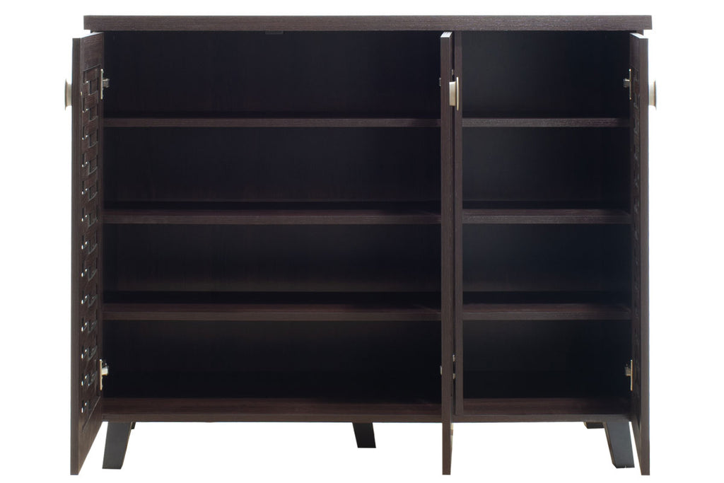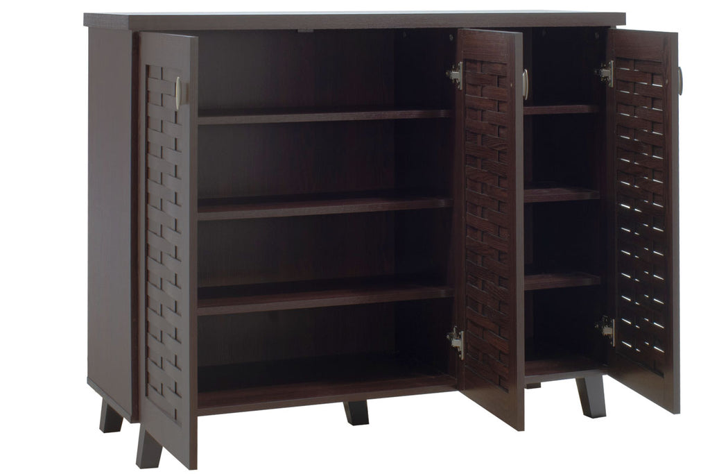 - Разполага с три врати с мрежест дизайн. Вътрешно оборудван с шест рафта за 16 чифта обувки, дрехи или аксесоари.