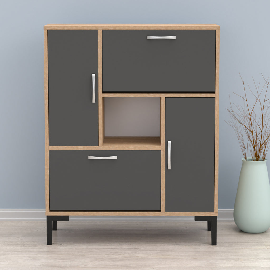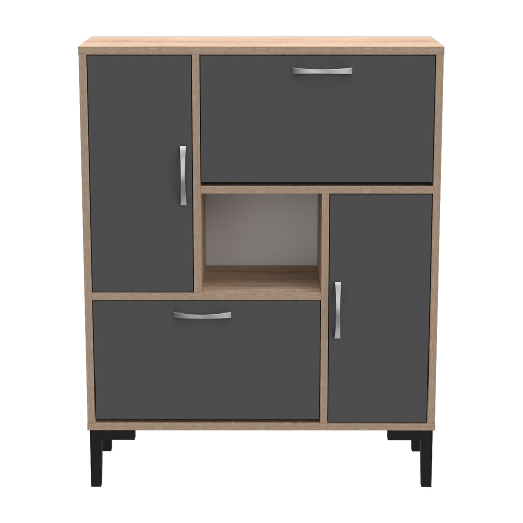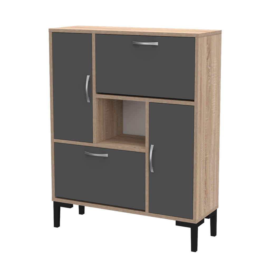Обичате ли да сте спретнати и чисти? Представяме ви красивата меламинова поставка за обувки MEDY в двуцветен цвят COAL-SONAMA с черни високи крака. Има 2 места за съхранение на обувки, 2 вертикални отделения за съхранение и квадратно отворено пространство в центъра. Нашата цел е да ви помогнем да организирате и подобрите функционалността на вашия дом по възможно най-добрия начин. РАЗМЕРИ: 85x30x108.5H см. МАТЕРИАЛ НА ИЗРАБОТКА: Поставката за обувки е изработена изцяло от 18мм меламин. Меламинът е синтетичен материал, много издръжлив и с голяма твърдост. Вътрешните рафтове за поставяне на обувките са изработени от полиетилен. ПОДДРЪЖКА: Поставката за обувки е лесна за поддръжка. Неговата меламинова конструкция му позволява да бъде устойчив на абразия, драскотини и петна. Освен това се почиства лесно с влажна кърпа. ПРЕДИМСТВА: •Красив дизайн •Практичност •Капацитет •Съотношение цена-качество-размер *Продуктът се доставя разглобен във фабрична опаковка ** Цветопредаването на продукта може леко да се различава от фотографското му представяне на вашия екран.