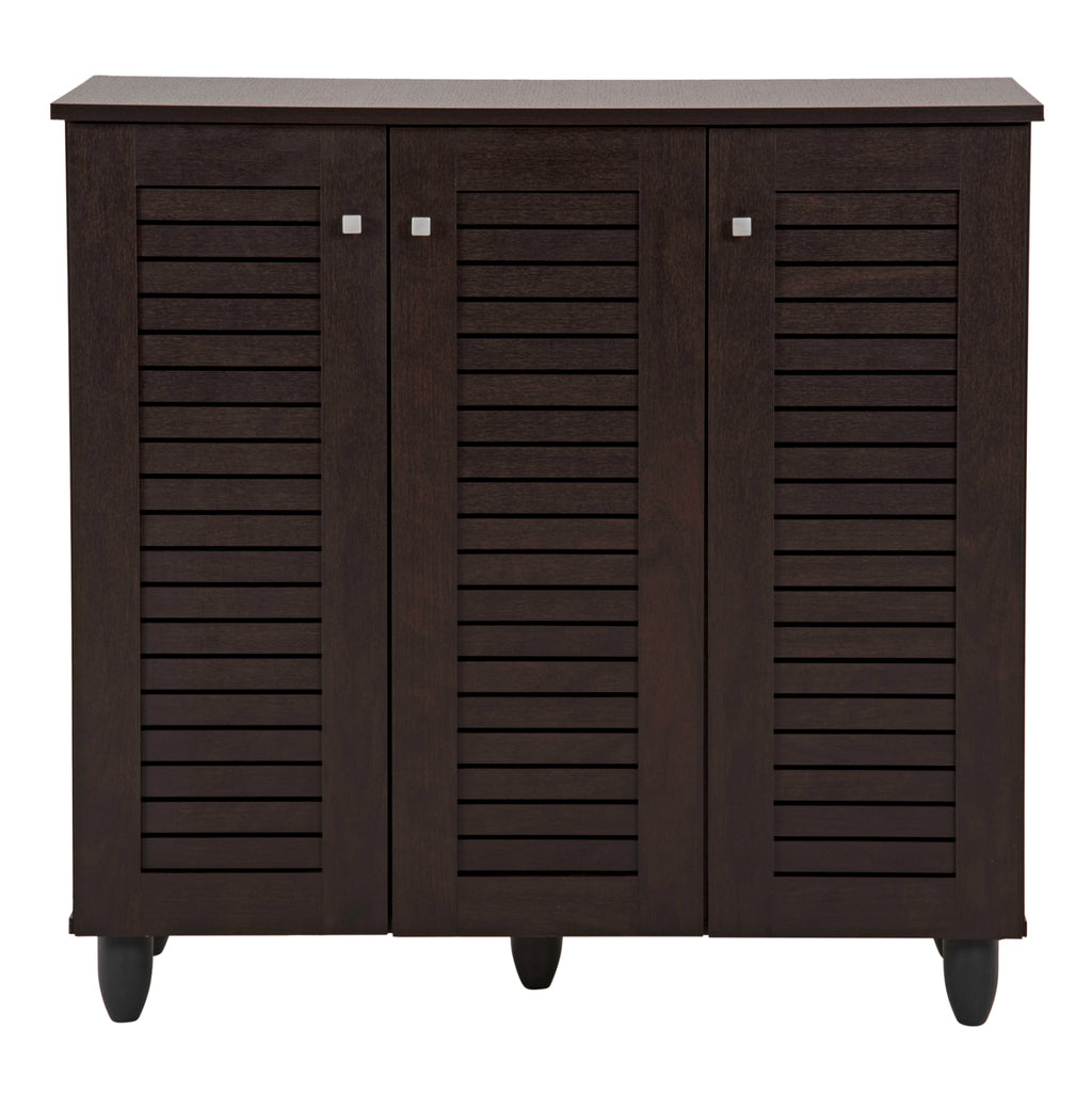 Представяме ви меламинова поставка-шкаф за обувки PROLLY в цвят WENGE. Това е сравнително висок шкаф с 2 отделни пространства с 3 рафта, които създават 4 места за съхранение, и се затваря с 3 врати с метални кубовидни дръжки. Двойна врата за по-голямото пространство и единична врата за по-малкото пространство. Нашата цел е да ви помогнем да организирате и подобрите по най-добрия възможен начин всичко, което искате. ТЕХНИЧЕСКИ ХАРАКТЕРИСТИКИ: Габаритни размери: 87x32x88H cm. Големи рафтове за шкаф: A) 56x24x17H cm. B) 56x24x17H cm. В) 56x24x17H cm. D) 56x30x17H cm. Малки рафтове за шкаф: A) 27,5x24x17H cm. B) 27,5x24x17H cm. В) 27,5x24x17H cm. D) 27,5x30x17H cm. Височина на крака: 10 см. Разстояние между краката: 76х20 см. МАТЕРИАЛ ЗА ИЗРАБОТКА: Шкафът-гардероб е изработен изцяло от меламин. Меламинът е синтетичен материал, много издръжлив и с голяма твърдост, под формата на листове, които след това се трансформират в ПДЧ чрез пресоване. Дръжките на вратите са метални. Краката на стелажа за обувки са изработени от полиетилен за специална устойчивост на тежест, вода и, разбира се, време. ПОДДРЪЖКА: Шкафът за обувки е лесен за поддръжка. Неговата меламинова конструкция му позволява да бъде устойчив на абразия, драскотини и петна. Освен това се почиства лесно с влажна кърпа. ПРЕДИМСТВА: Поставката за обувки е красива и функционална. Също така, вратите имат дизайн на капаци, който позволява циркулация на въздуха и допринася за правилната и необходима вентилация на шкафа за обувки. Неговият цвят и общият му дизайн със сигурност ще привлекат вниманието и ще принудят много хора да го включат в списъка си с желания. **Продуктът се доставя разглобен във фабрична опаковка