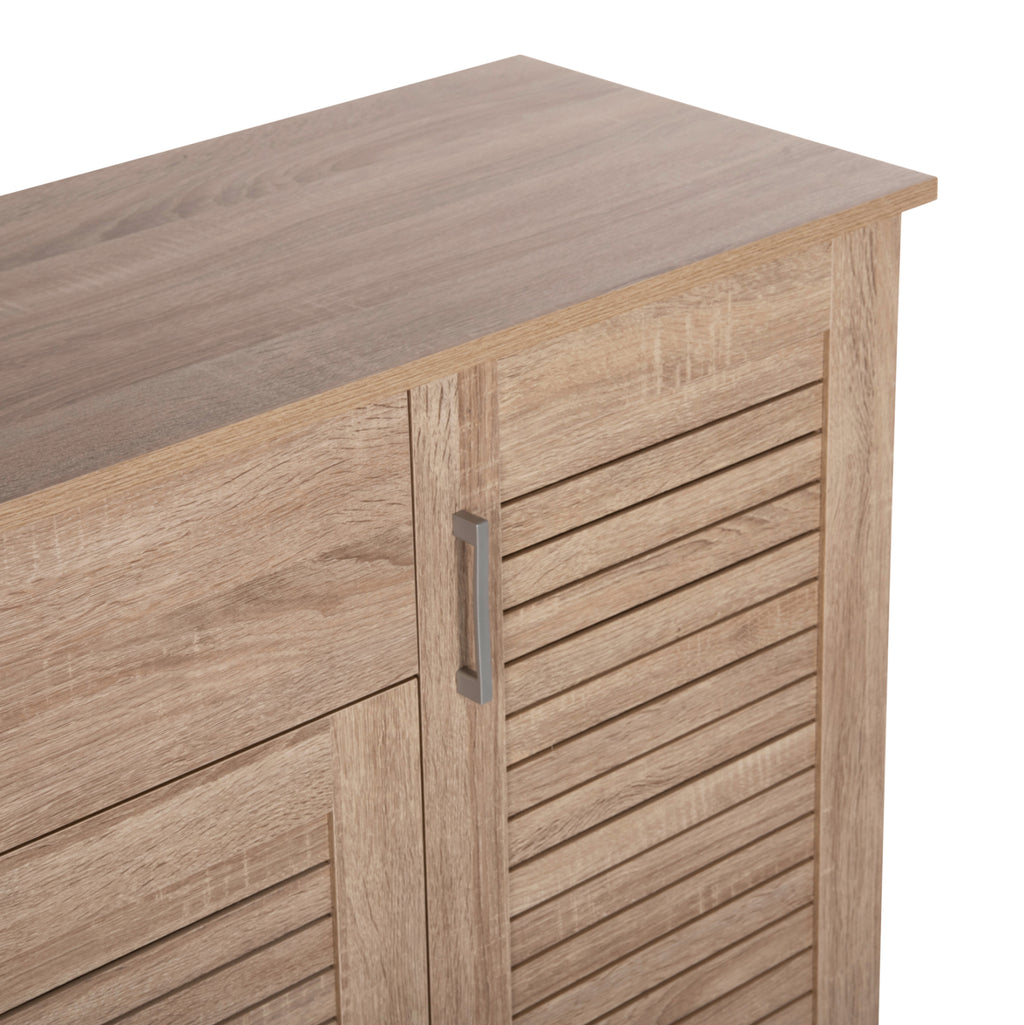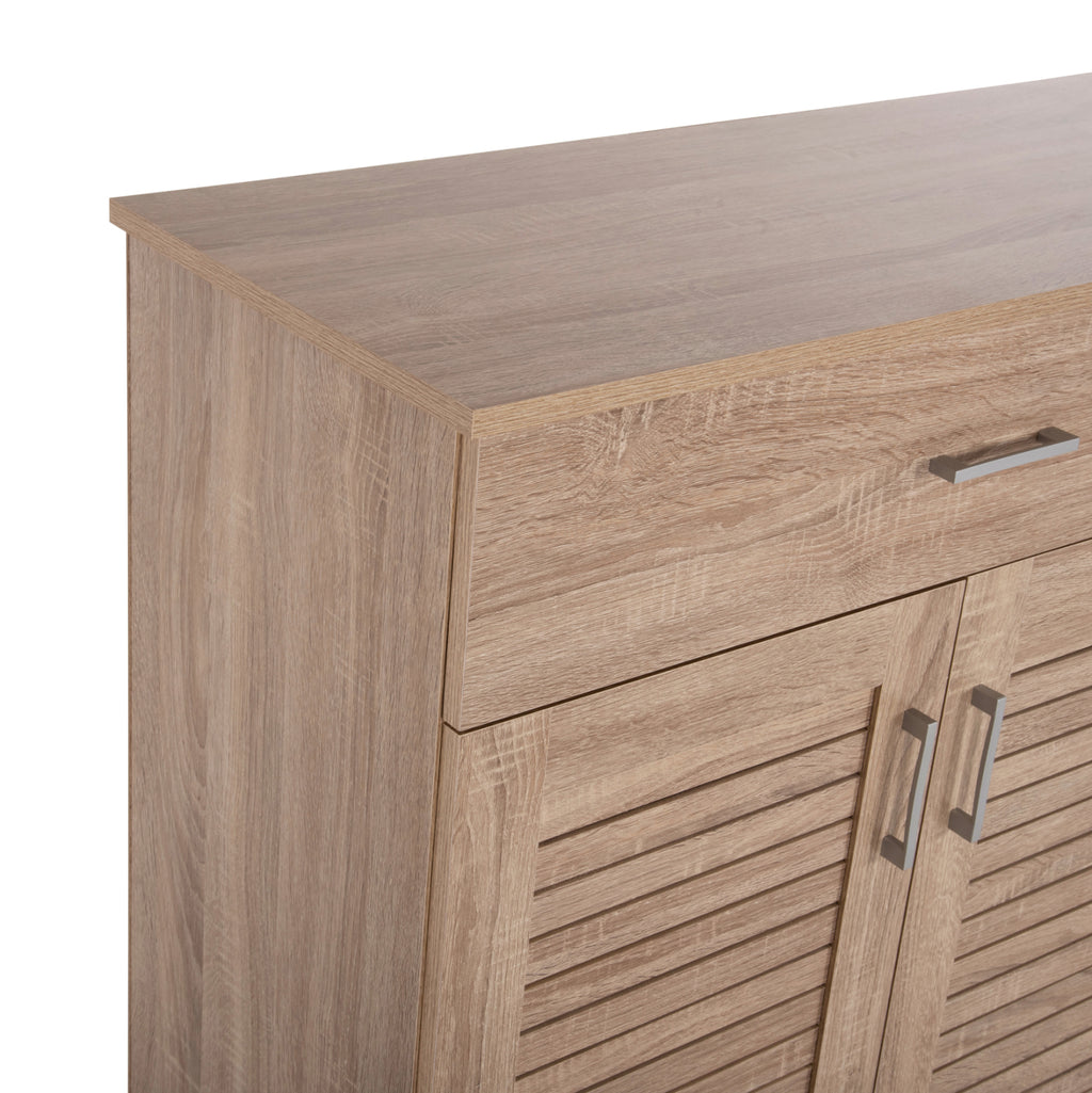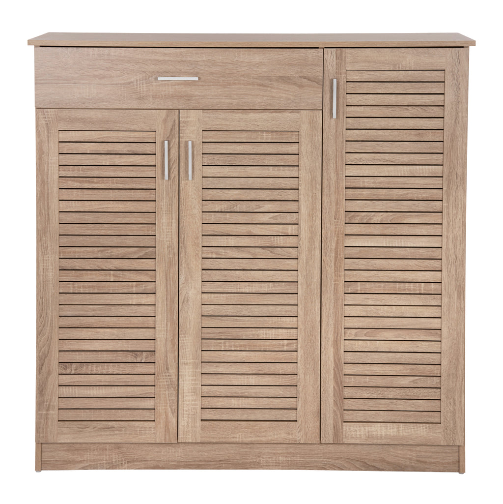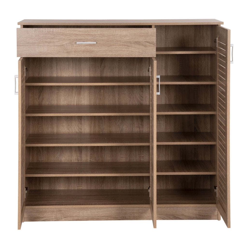 Представяме ви меламинова кутия-шкаф за обувки PROBY в цвят SONOMA. Това е сравнително висок шкаф с 2 отделни пространства и чекмедже. Пространството под чекмеджето с двойна врата има 5 рафта за съхранение, докато единичната врата побира 6 рафта за съхранение. Дръжките както на чекмеджето, така и на вратите са от сребрист метал. Нашата цел е да ви помогнем да организирате и подобрите по най-добрия възможен начин всичко, което искате. ТЕХНИЧЕСКА ХАРАКТЕРИСТИКА: РАЗМЕРИ: 120х37,5х121,5Н см. Чекмедже: 69,5x27x14H см. Двоен шкаф: Рафт 1: 75,5x32,5x17,5H см. Рафт 2: 75,5x32,5x17H см. Рафт 3: 75,5x32,5x17H см. Рафт 4: 75,5x32,5x17H см. Рафт 5: 75,5x34x17,5H см. Единичен шкаф: Рафт 1: 37x32,5x17H см. Рафт 2: 37x32,5x17H см. Рафт 3: 37x32,5x17H см. Рафт 4: 37x32,5x17H см. Рафт 5: 37x32,5x17H см. Рафт 6: 37x34x17H см. МАТЕРИАЛ ЗА ИЗРАБОТКА: Шкафът-гардероб е изработен изцяло от меламин. Меламинът е синтетичен материал, много издръжлив и с голяма твърдост, под формата на листове, които след това се трансформират в ПДЧ чрез пресоване. Дръжките на вратите са метални. ПОДДРЪЖКА: Шкафът за обувки е лесен за поддръжка. Неговата меламинова конструкция му позволява да бъде устойчив на абразия, драскотини и петна. Освен това се почиства лесно с влажна кърпа. ПРЕДИМСТВА: Поставката за обувки е красива и функционална. Също така, вратите имат дизайн на капаци, който позволява циркулация на въздуха и допринася за правилната и необходима вентилация на шкафа за обувки. Неговият цвят и общият му дизайн със сигурност ще привлекат вниманието и ще принудят много хора да го включат в списъка си с желания. **Продуктът се доставя разглобен във фабрична опаковка