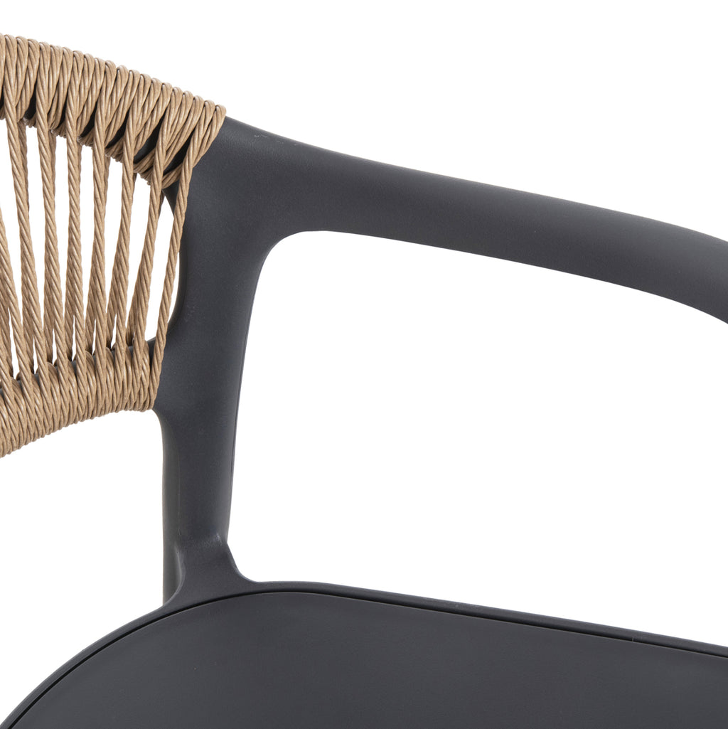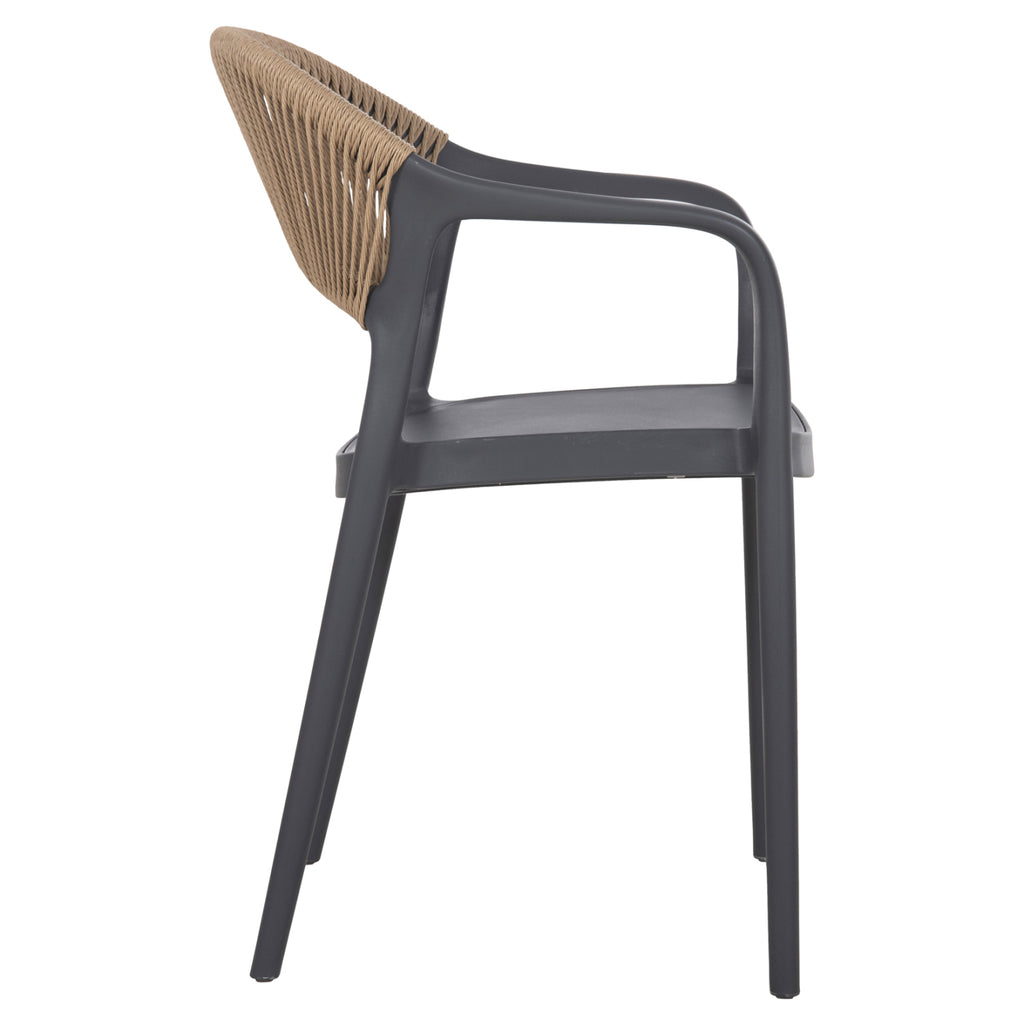 Η πολυθρόνα EVA έχει όλα όσα θα θέλατε από ένα τέτοιο έπιπλο. Όλη η πολυθρόνα είναι από μονοκόμματο πολυπροπυλένιο σε ΓΚΡΙ χρώμα με ελαφρώς κυρτή πλάτη επενδυμένη με συνθετικό σχοινί σε ΜΠΕΖ χρώμα, και πρακτικά μπράτσα. Όλη η κατασκευή είναι ελαφριά και άνετη, και θα γίνει το αγαπημένο κάθισμα σε όποιο χώρο κι αν τοποθετηθεί χάρη στην πρακτικότητά του. Ιδανική επιλογή και για επαγγελματική χρήση, όπως σε catering κτλ, επειδή είναι στοιβαζόμενη. ΔΙΑΣΤΑΣΕΙΣ: 56,5x53x80Υ εκ. Διαστάσεις καθίσματος: 39,5x42,5 εκ. Διαστάσεις πλάτης: 44x21,5 εκ. Ύψος μπράτσου: 67 εκ. Ύψος καθίσματος: 45,5 εκ. Ύψος πoδιού: 43 εκ. Απόσταση ποδιών: 54,5x47,5 εκ. ΥΛΙΚΑ ΚΑΤΑΣΚΕΥΗΣ: Ολόκληρη η πολυθρόνα είναι κατασκευασμένη από ενισχυμένο πολυπροπυλένιο. Το πολυπροπυλένιο είναι ιδιαίτερα ανθεκτικό στο βάρος και στο νερό, ενώ έχει μεγάλη αντοχή σε θερμοκρασίες έως και 125 βαθμούς Κελσίου. Επίσης, η ανθεκτικότητά του δεν περιορίζεται στο βάρος, στο νερό και στην θερμοκρασία αλλά είναι ασυνήθιστα ανθεκτικό σε πολλά χημικά διαλυτικά, οξέα, και βάσεις. Το σχοινί είναι επίσης κατασκευασμένο από ίνες πολυπροπυλενίου. ΣΥΝΤΗΡΗΣΗ: Τα έπιπλα πολυπροπυλενίου καθαρίζονται πανεύκολα με ένα βρεγμένο πανί. Εάν μάλιστα βρίσκονται σε εξωτερικό χώρο, μπορούν να καθαριστούν απευθείας με τρεχούμενο νερό. ** Η χρωματική απόδοση του προϊόντος ενδέχεται να διαφέρει ελαφρώς σε σχέση με την φωτογραφική απεικόνισή του στην οθόνη σας.