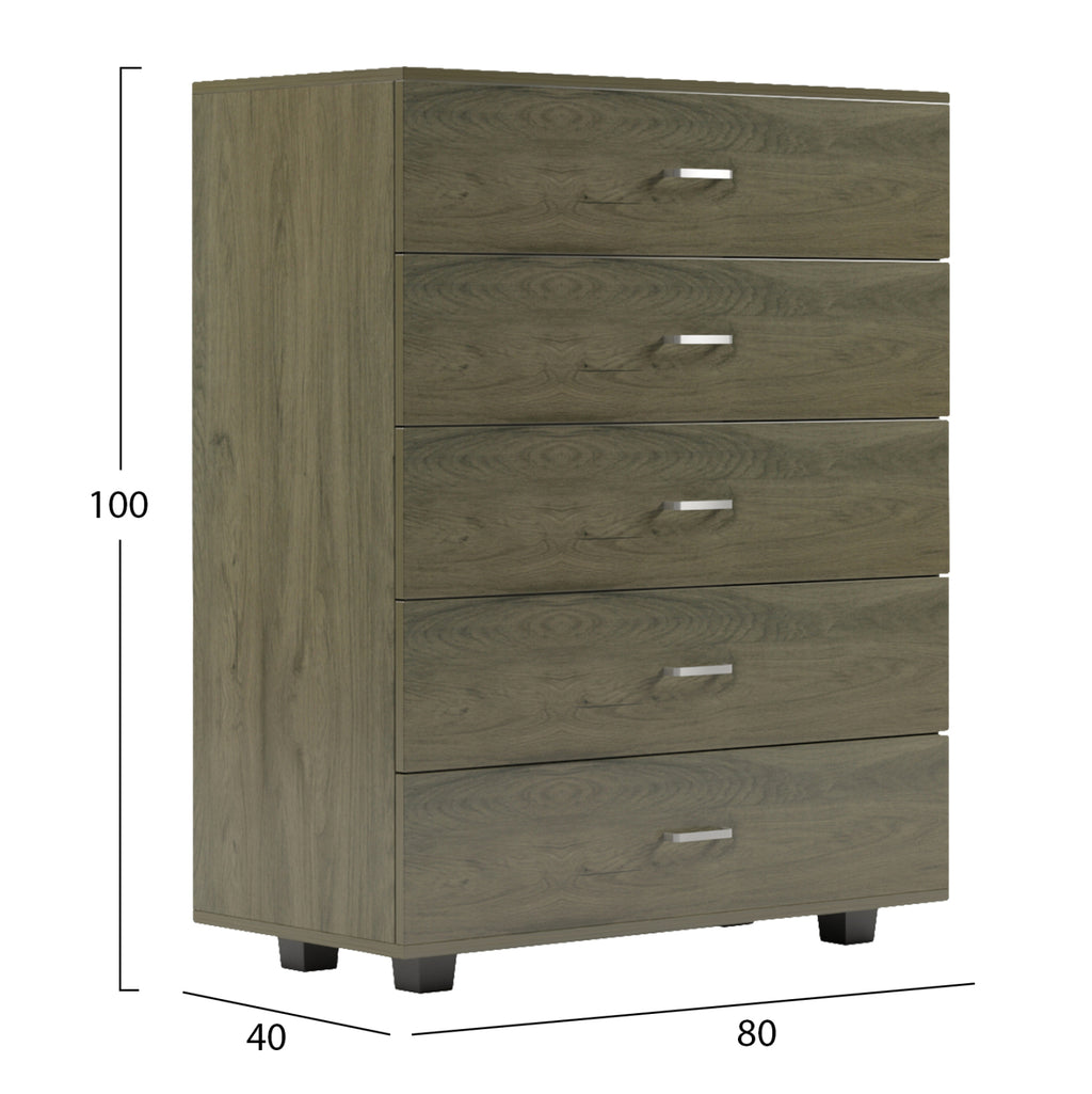 Открийте перфектното съчетание между модерен стил и функционалност със скрина Thorg в изискания тъмно маслиненозелен цвят. Този елегантен скрин с 5 чекмеджета ще добави характер и изтънченост към вашата спалня с неговия уникален цвят и отлична организация.