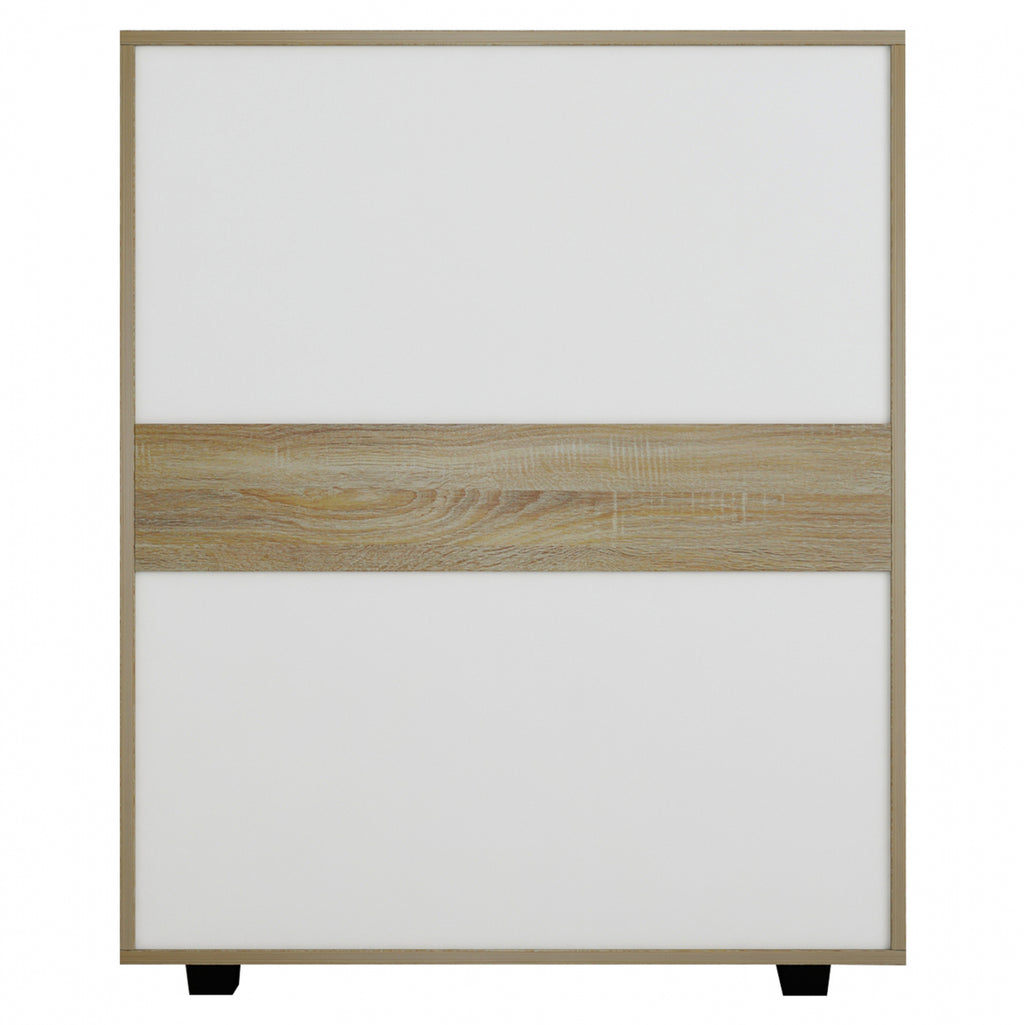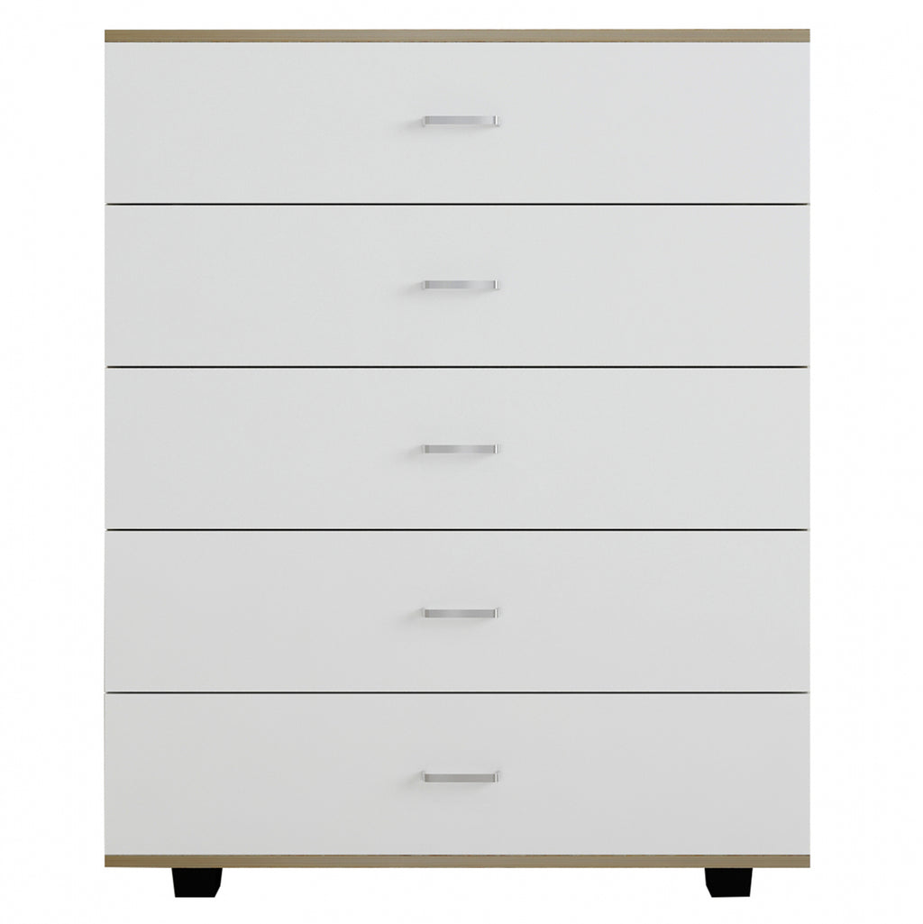 THORG е голям скрин с 5 широки чекмеджета, който ще задоволи всички ваши нужди. Има цвят SONAMA с БЕЛИ чекмеджета и сребристи дръжки. Черните крака на скрина са стабилни и широки, придават здравина на конструкцията и в същото време създават приятен двуцветен цвят с основното тяло на скрина. РАЗМЕРИ: 80X40X100H cm Размери на чекмеджето: 72x32x15H cm. (x5) МАТЕРИАЛИ НА ИЗРАБОТКА: Краката на скрина са изработени от подсилен полипропилен. Полипропиленът е особено устойчив на тегло и вода, като същевременно има голяма устойчивост на температури до 125 градуса по Целзий. Освен това неговата издръжливост не се ограничава до тегло, вода и температура, но е необичайно устойчив на много химически разтворители, киселини и основи. Цялата мебел е изработена от качествен 15мм меламин. Меламинът е вид дървесина под формата на ПДЧ. ПДЧ са продукти, които имат формата на плоча (панел). Това е синтетичен материал с много твърда повърхност, което го прави много устойчив на драскотини, абразия и петна. ПОДДРЪЖКА: Меламинът, който е строителният материал, се почиства много лесно от петна благодарение на твърдата си повърхност. Можете да забършете всички повърхности с влажна кърпа и това е достатъчно, за да изглеждат вашите мебели отново като нови. За упорити петна можете да използвате мек почистващ препарат. ПРЕДИМСТВА: Скринът е точно това, което очаквате. Удобна и стабилна конструкция с качествена конструкция. Сглобяването е лесно и инструкциите за сглобяване се доставят с опаковката. Фактът, че скринът има фиксирани крака, го прави много издръжлив и ви дава възможност да използвате горната повърхност без страх за всичко, което пожелаете. И всичко това с най-доброто съотношение качество-цена на пазара. *Продуктът се доставя във фабрична опаковка **Точното цветопредаване на продукта може леко да се различава от действителния продукт поради различните настройки на всеки монитор.