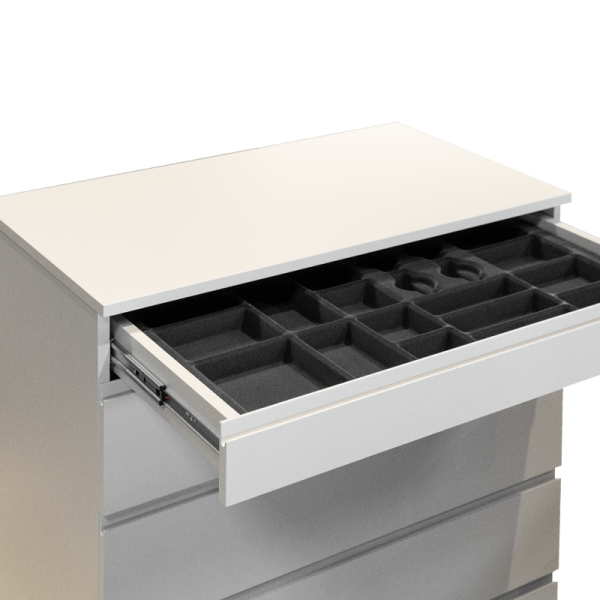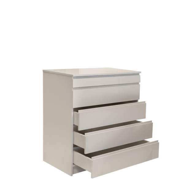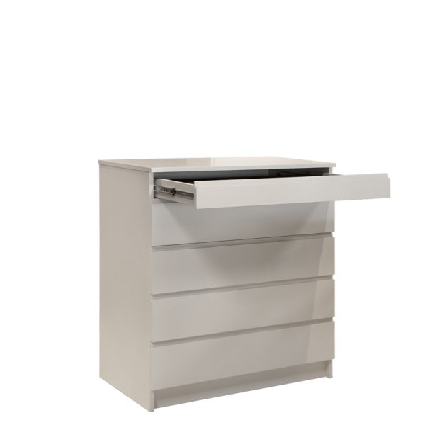 Скринът YORK впечатлява с елегантен дизайн и практична организация. Изработен от висококачествено ПДЧ с дебелина 18 мм в изискан кремав цвят, той разполага с пет просторни чекмеджета с механизъм за плавно затваряне. Най-горното чекмедже е снабдено с практичен органайзер за колани, часовници и аксесоари.