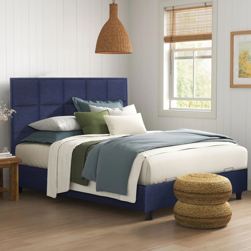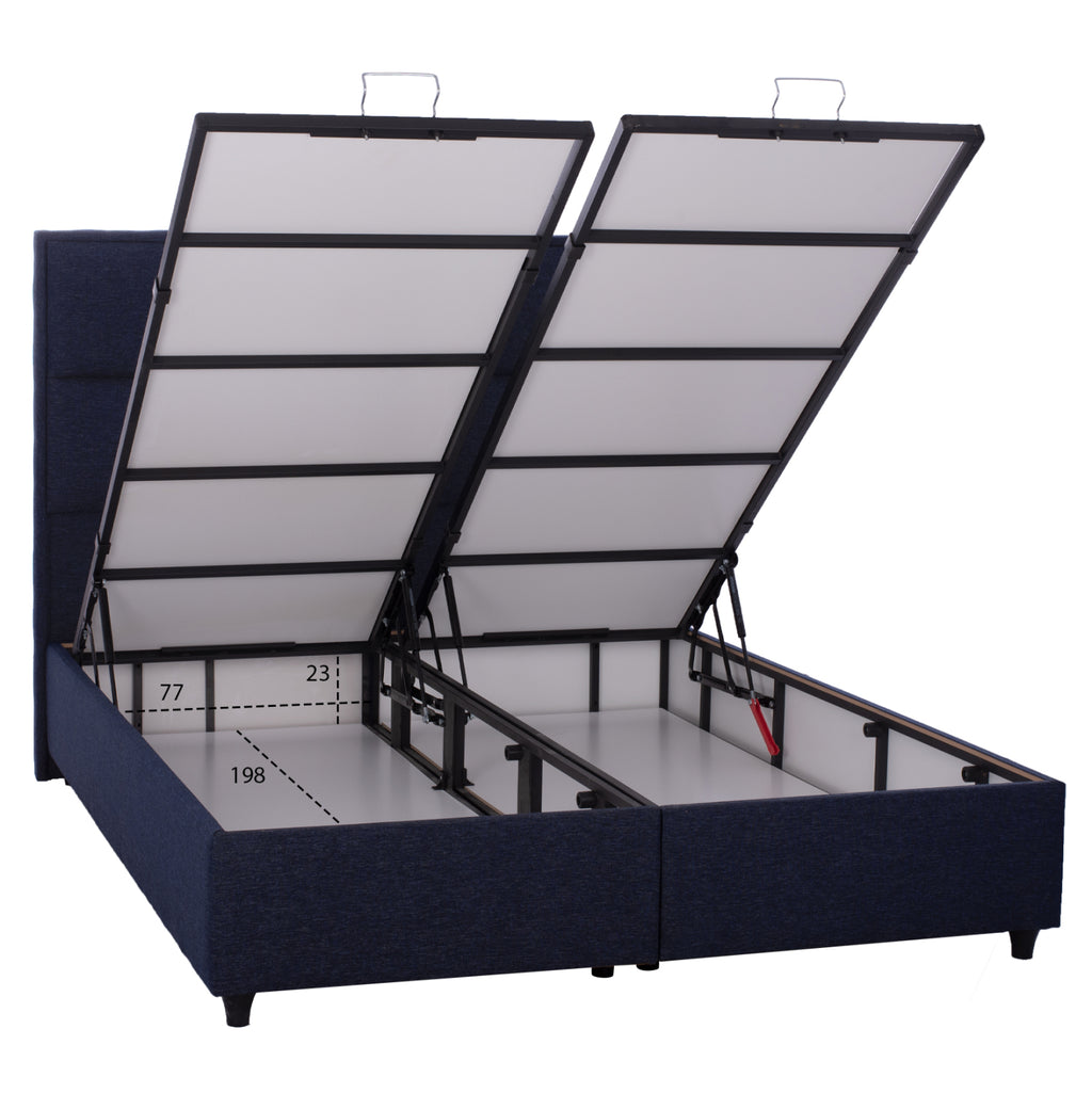 Стара ирландска поговорка гласи, че „Смехът и сънят са най-добрите лекарства на света“. Ние, смехът не е наша работа да предлагаме, но със сигурност можем да ви осигурим добър нощен сън! С легло ALBA никога няма да поискате нищо друго. Таблата е висока и тапицирана в стил квадратен капитон, а цялата тапицерия на леглото е изработена от дамаска с отлично качество. Синият цвят в цялото легло е ефектен и може да се комбинира с различни декоративни шарки. Основната характеристика на това легло обаче е, че не следва класическата конструкция с ламелни ламели за опора на матрака, а се състои от непрекъсната повърхност (2 ПДЧ), върху която се поставя матракът. В допълнение, всяка повърхност от ПДЧ е повдигната с метален предпазен механизъм с 4 амортисьора и метални дръжки, предлагащи голямо място за съхранение. В матрак с размери 160х200см. ще отговаря на всяка ваша мечта! РАЗМЕРИ: 165x202x34H (до повърхността на основата) cm. Височина на облегалката за глава: 132 см. Височина на крака: 7 см. Размери на мястото за съхранение: 77x198x23 см. (х2) Размери на матрака: 160х200см. Алтернатива: Размери на матрака: 80х200см. (x2) КОНСТРУКТИВНИ МАТЕРИАЛИ: Рамката на леглото е изработена от дърво, което прави леглото изключително здраво и издръжливо, благодарение на подсилената му конструкция. Механизмът за съхранение е метален за устойчивост на тегло и време. Краката са изработени от подсилен полипропилен. Полипропиленът е особено устойчив на тегло и вода, като същевременно има голяма устойчивост на температури до 125 градуса по Целзий. Освен това неговата издръжливост не се ограничава до тегло, вода и температура, но е необичайно устойчив на много химически разтворители, киселини и основи. Тапицерията е изработена изцяло от висококачествен релефен плат, придаващ атрактивен вид и изискан чар на декорацията на спалнята. Матракът се поддържа от 2 здрави ПДЧ плоскости. ПОДДРЪЖКА: Конструкционните материали на леглото позволяват лесна поддръжка. Едно минаване с мокра кърпа е достатъчно, за да освежите леглото и винаги да изглежда като ново. ПРЕДИМСТВА: Легло ALBA е специално предложение, което ще зарадва своите потребители, благодарение на естетическата специфика на ватираната материя. Но липсата на класически пружинен бокс и конструкцията с ПДЧ опора на матрака е голямото предимство на това легло. В края на краищата най-добрият начин за поддържане на един матрак е точно това. И сякаш това не е достатъчно, умното съхранение под основата на матрака допълва използваемостта на това легло. Това е идеално легло както за дома, така и за бизнес помещения, като хотели и Airbnb. Освен това дори сглобяването му е много лесно, тъй като завинтваш краката към подложките и след това регулираш таблата. Просто и красиво създайте спалнята на вашите мечти! Продуктът се предлага в разглобен вид, във фабрична опаковка. Сглобяването е лесно, завивате краката към основите и след това прикрепяте таблата.