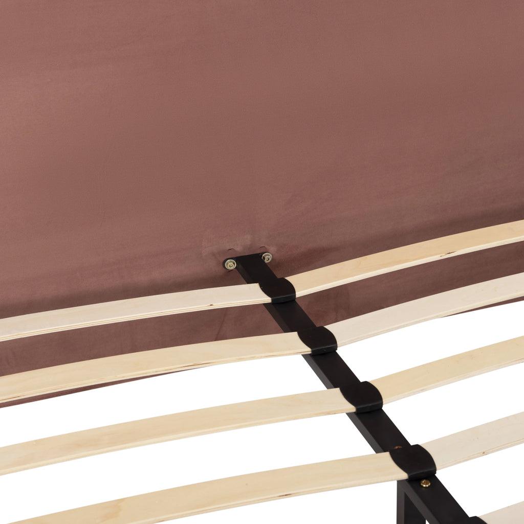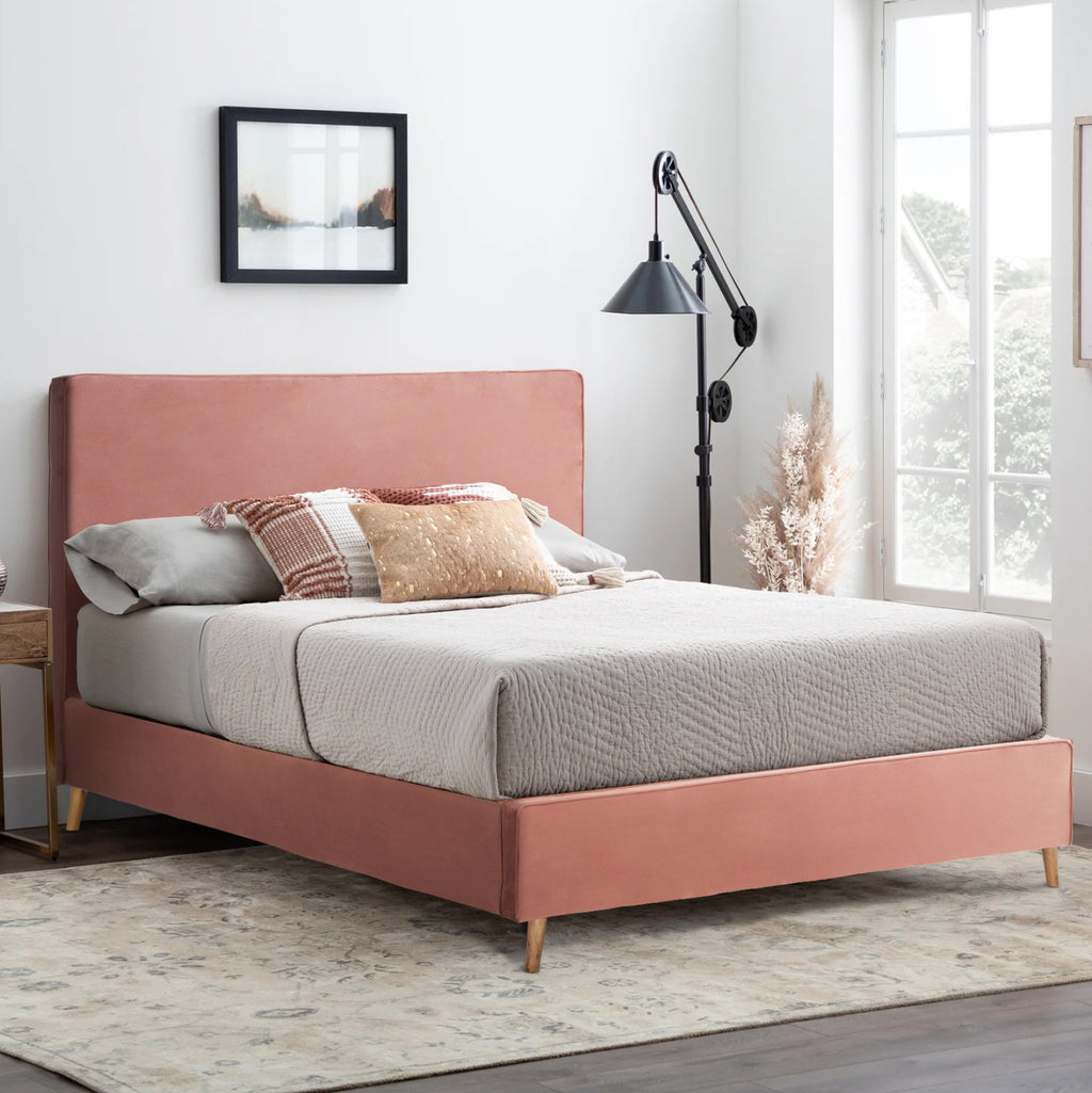 С легло INDRA можете да се насладите на всеки момент от съня си. Има висока табла с кадифена подплата в цвят ROTTEN APPLE и релса, която минава през всички ъгли в същия цвят. Двулицевият матрак "седи" върху анатомични дъски, следвайки традиционния начин на оформяне на леглото. Модерно и семпло предложение, което ще обнови вашата спалня. РАЗМЕРИ: Външни размери: 172x214x112H см. Височина на поставката за крачета: 31см. Размери на матрака: 160х200см. МАТЕРИАЛИ НА ИЗРАБОТКА: Леглото е изработено от дърво, както и краката му, което му придава здравина и издръжливост. Тапицерията е изцяло изработена от висококачествена кадифена материя, придаваща атрактивен вид и изискан чар на декорацията на спалнята. Кадифето е плат, който е мек, спокоен, възхитителен и изискан. В миналото се е изработвал предимно от копринени влакна и всъщност с много специална обработка, която е изисквала много време и специален стан. За щастие днес нещата са се променили и тази прекрасна материя е достъпна за всеки. ПОДДРЪЖКА: Използвайте вашата прахосмукачка с приставката с меки косми и почистете кадифето с нежни движения. Ако има петно, леко намокрете кърпа и много внимателно разтрийте петното, без да натискате, защото ще попие още по-дълбоко. Като цяло е добра идея редовно да четкате всичко плюшено, което имате, със специална четка за плюш, за да го поддържате гладко и меко. ПРЕДИМСТВА: Това легло има сравнително високи крака, които позволяват достъп до пода отдолу за почистване, без да се налага да се движите. Освен това опорните бордове на матрака са включени в комплекта и се монтират много лесно, също толкова лесно се сглобяват. Неговият модерен и семпъл дизайн може да се комбинира с много декоративни шарки в пространството. Идеален за дома, както и за хотели и Airbnb. **Леглото се доставя разглобено с подробни инструкции за сглобяване.