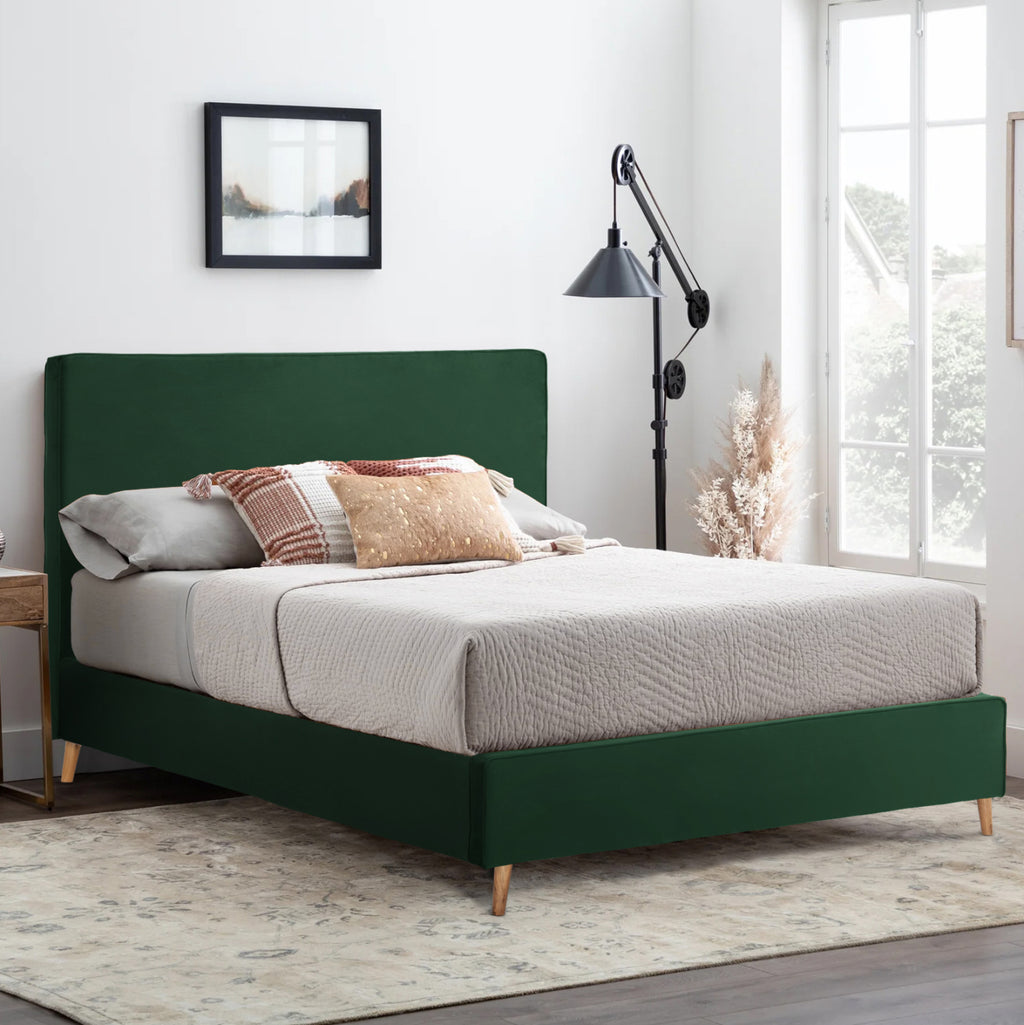 С легло INDRA можете да се насладите на всеки момент от съня си. Има висока табла с кадифена подплата в цвят CYPARISSI и релса, която минава през всички ъгли в същия цвят. Двулицевият матрак "седи" върху анатомични дъски, следвайки традиционния начин на оформяне на леглото. Модерно и семпло предложение, което ще обнови вашата спалня. РАЗМЕРИ: Външни размери: 172x214x112H см. Височина на поставката за крачета: 31см. Размери на матрака: 160х200см. МАТЕРИАЛИ НА ИЗРАБОТКА: Леглото е изработено от дърво, както и краката му, което му придава здравина и издръжливост. Тапицерията е изцяло изработена от висококачествена кадифена материя, придаваща атрактивен вид и изискан чар на декорацията на спалнята. Кадифето е плат, който е мек, спокоен, възхитителен и изискан. В миналото се е изработвал предимно от копринени влакна и всъщност с много специална обработка, която е изисквала много време и специален стан. За щастие днес нещата са се променили и тази прекрасна материя е достъпна за всеки. ПОДДРЪЖКА: Използвайте вашата прахосмукачка с приставката с меки косми и почистете кадифето с нежни движения. Ако има петно, леко намокрете кърпа и много внимателно разтрийте петното, без да натискате, защото ще попие още по-дълбоко. Като цяло е добра идея редовно да четкате всичко плюшено, което имате, със специална четка за плюш, за да го поддържате гладко и меко. ПРЕДИМСТВА: Това легло има сравнително високи крака, които позволяват достъп до пода отдолу за почистване, без да се налага да се движите. Освен това опорните бордове на матрака са включени в комплекта и се монтират много лесно, също толкова лесно се сглобяват. Неговият модерен и семпъл дизайн може да се комбинира с много декоративни шарки в пространството. Идеален за дома, както и за хотели и Airbnb. **Леглото се доставя разглобено с подробни инструкции за сглобяване.