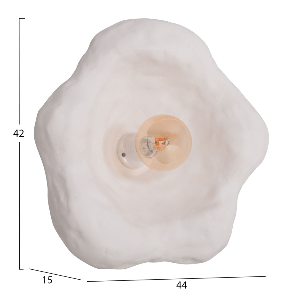 Стенната лампа (аптерия) LUXON е изработена от фиброцимент в БЯЛ цвят и има неправилна форма и текстура, следвайки най-новата тенденция в интериорния дизайн.