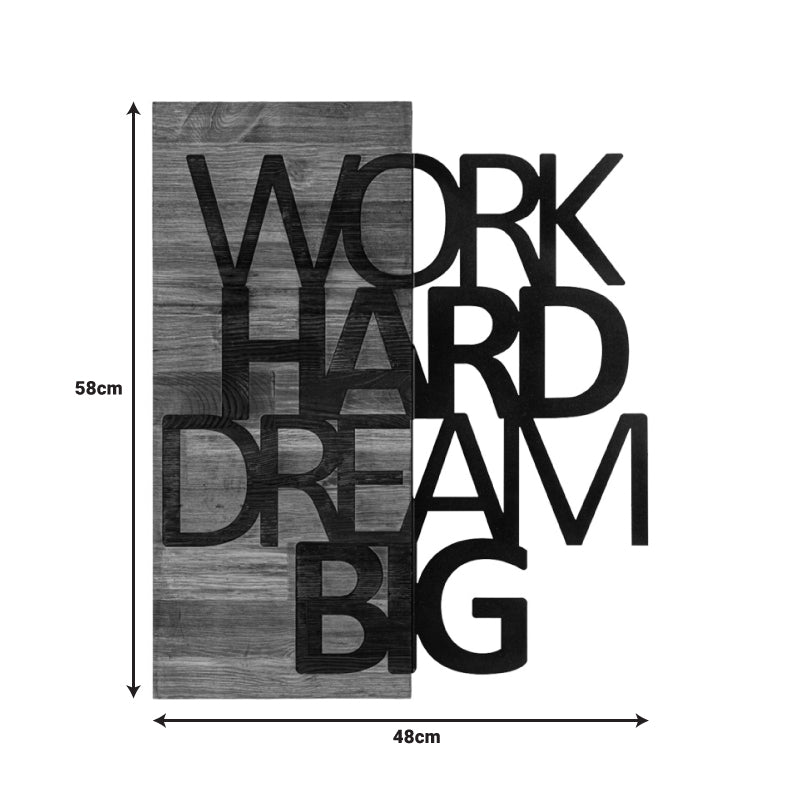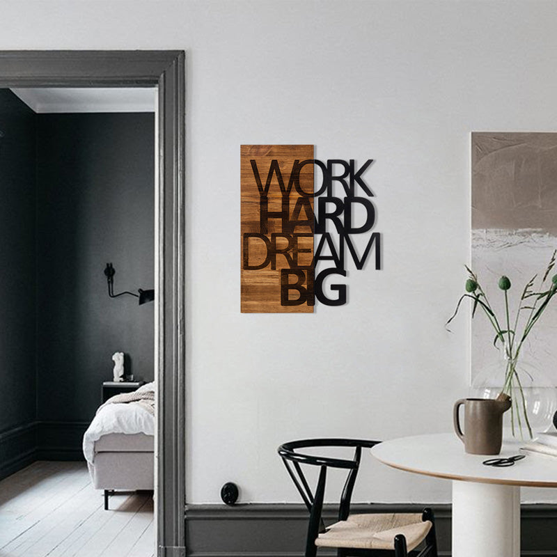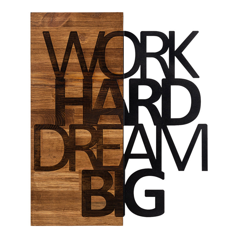 Повишете енергията и позитивността на вашето пространство с тази уникална дървена декорация за стена! С думите „РАБОТИ УСИЛНО МЕЧТАЙ ГОЛЕМО“, стилно гравирани върху естествено дърво, това парче служи като ежедневно напомняне да преследваш целите си със страст и отдаденост. Перфектен за вашия дом, офис или всяко пространство, което се нуждае от докосване на вдъхновение. Добавете топлина и мотивация към стената си днес!