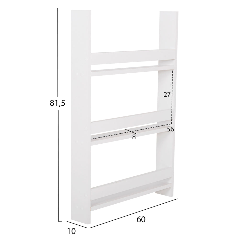 Този стенен рафт с 3 рафта е идеален за детската стая и ще ви помогне да организирате и аранжирате по-добре пространството. Изработен от 18мм меламин в БЯЛ цвят, ще стане неизменна част от детската стая. РАЗМЕРИ: 60x10x90H см. Рафтове: 56x8x27Y см. МАТЕРИАЛИ ЗА ПРОИЗВОДСТВО: Меламинът е вид дървесина под формата на ПДЧ. ПДЧ са продукти, които имат формата на плоча (панел). Това е синтетичен материал с много твърда повърхност, което го прави много устойчив на драскотини, абразия и петна. ПОДДРЪЖКА: Меламинът, който е строителният материал, се почиства много лесно от петна благодарение на твърдата си повърхност. Можете да забършете всички повърхности с влажна кърпа и това е достатъчно, за да изглеждат вашите мебели отново като нови. За упорити петна можете да използвате мек почистващ препарат. КАКВО ХАРЕСВАМЕ: •Пестене на място •Класически дизайн •Практичност *Продуктът се доставя във фабрична опаковка ** Цветопредаването на продукта може леко да се различава от фотографското представяне на вашия екран.