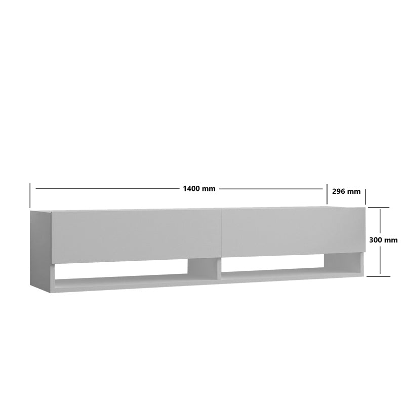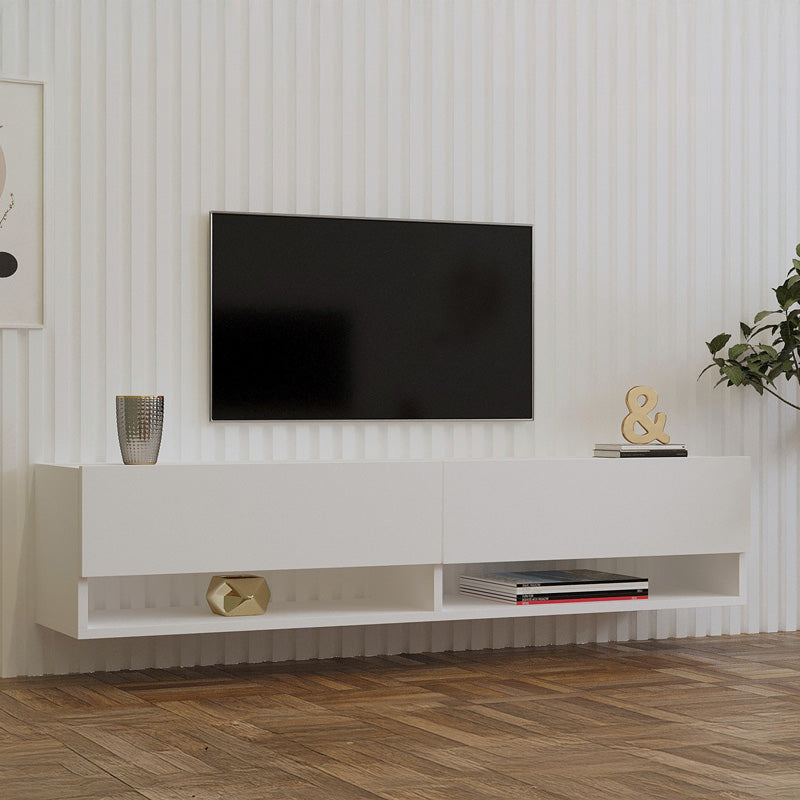 Стенен ТВ шкаф Melosa в бяло 141x30x31см - елегантно решение за окачване на стена.