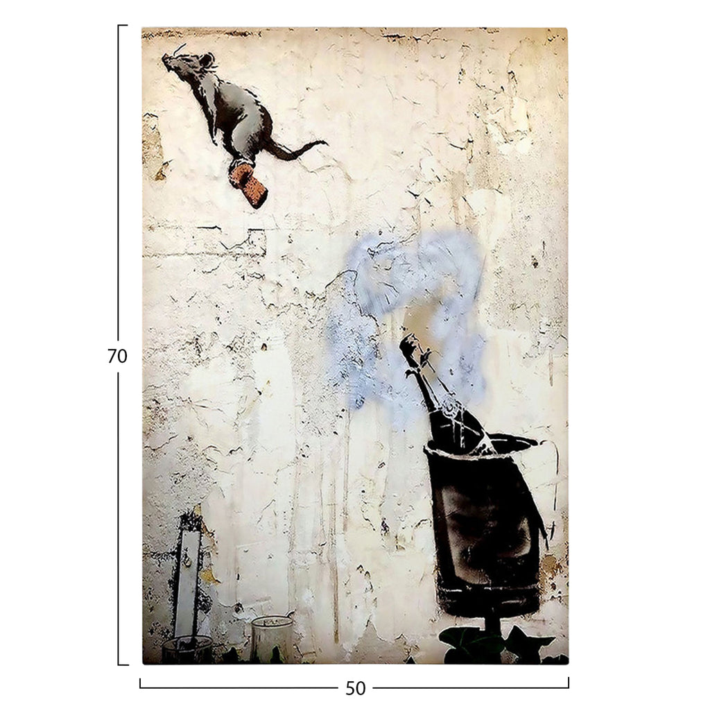 Стенописът трансформира начина, по който възприемаме пространството. И така, украсете вашето пространство с новата серия картини за стена GOBI! Тази цветна картина на отварящо се шампанско е реализирана върху дигитално отпечатано платно (50% памук-50% полиестер) върху дървена рамка. (Дизайнер: Banksy) РАЗМЕРИ: 50x3(дебелина)x70H cm. Рамка: 2х3 см. ГРИЖА: Почистване от прах при нужда. Не използвайте вода или химически почистващи препарати. ** Цветопредаването на продукта може леко да се различава от неговото фотографско представяне на вашия екран.
