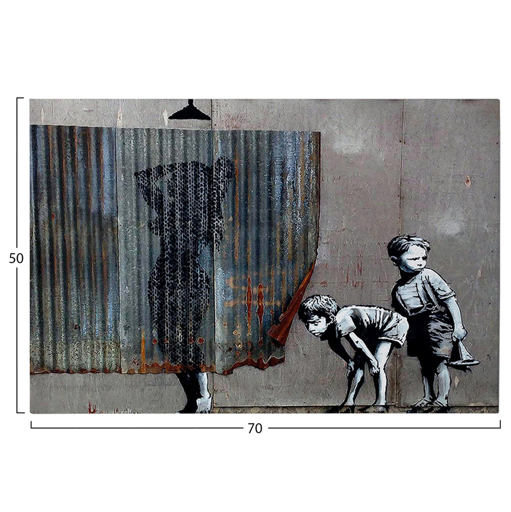 Стенописът трансформира начина, по който възприемаме пространството. И така, украсете вашето пространство с новата серия картини за стена GOBI! Тази цветна картина на две играещи деца е реализирана върху дигитално отпечатано платно (50% памук-50% полиестер) върху дървена рамка. (Създаден от: Banksy) РАЗМЕРИ: 70x3(дебелина)x50H cm Рамка: 2x3 cm ГРИЖИ: Почистване от прах, когато е необходимо. Не използвайте вода или химически почистващи препарати. ** Цветопредаването на продукта може леко да се различава от неговото фотографско представяне на вашия екран.