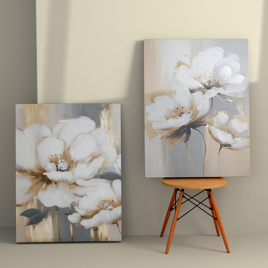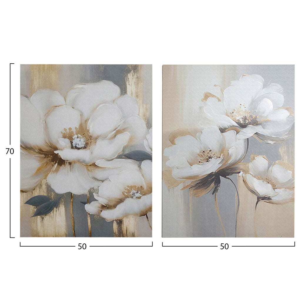 Стенописите трансформират начина, по който възприемаме пространството. И така, украсете вашето пространство с новата серия картини за стена GOBI! Тези цветни картини (2 бр.) изобразяват цветя и са реализирани върху щамповано платно върху дървена рамка и можете да ги поставите както заедно, така и на различни места! РАЗМЕРИ: 50x3(дебелина)x70H см. (X2) ГРИЖА: Почистване на прах, когато е необходимо. Не използвайте вода или химически почистващи препарати. ** Цветопредаването на продукта може леко да се различава от неговото фотографско представяне на вашия екран.