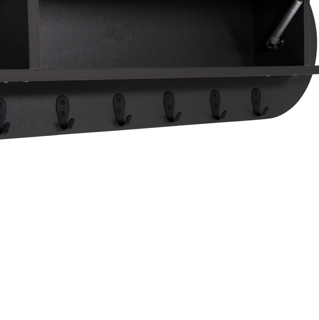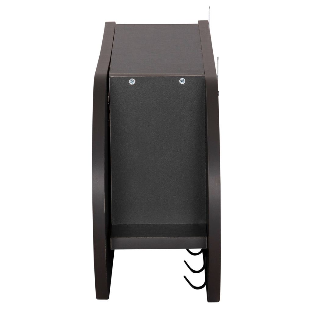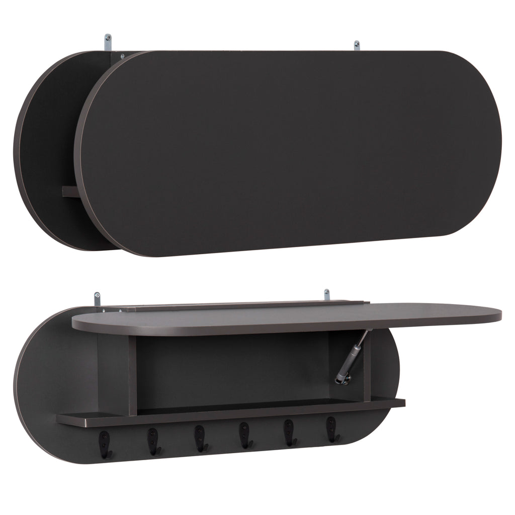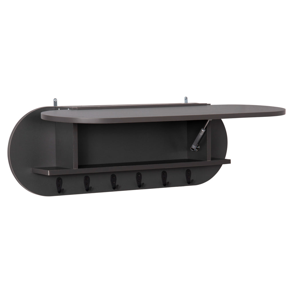 Меламиновата входна закачалка за стена STOR в ТЪМНО СИВО е практично предложение за декорация на приемната част на вашия дом, което ще ви помогне да създадете добре организирано и подредено пространство. Има овална форма и разполага с 6 единични закачалки (кукички) и 1 правоъгълно място за поставяне на предмети/рафт, което обаче се затваря, тъй като предната повърхност е вратата на рафта. Тази врата се отваря нагоре и "скрива" освен рафта, и закачалките. РАЗМЕРИ: 84x15.5x28.5H cm Места за съхранение: 49x12x18H cm. ------- (2x) 8,5x12x19H cm. МАТЕРИАЛИ НА ИЗРАБОТКА: Закачалката е изработена от меламин с дебелина 15 мм. Меламинът е вид дървесина под формата на ПДЧ (панел). Като материал е много издръжлив и с голяма твърдост. Така че това е синтетичен материал с много твърда повърхност, което го прави много устойчив на драскотини, абразия и петна. ПОДДРЪЖКА: Меламинът се почиства много лесно от петна благодарение на твърдата си повърхност. Можете да избършете всички повърхности с влажна кърпа и това е достатъчно. За упорити петна можете да използвате мек почистващ препарат. *Продуктът се доставя несглобен във фабрична опаковка ** Цветопредаването на продукта може леко да се различава от фотографското изображение на вашия екран.