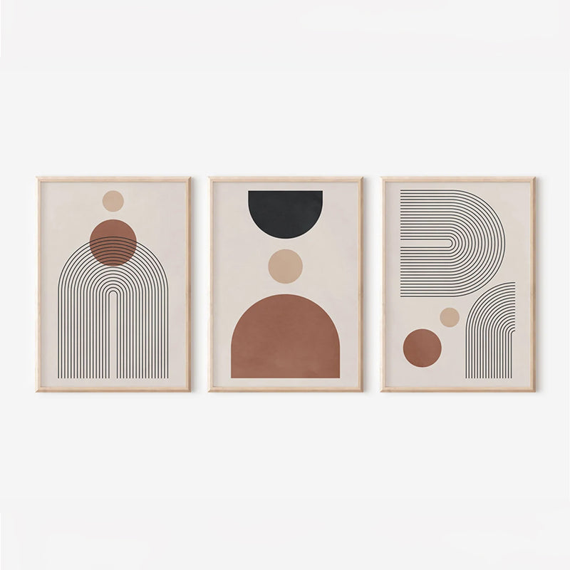 Придайте на стената си минималистичен и изискан характер с този комплект панели „триптих“ Klentie. Абстрактните, геометрични композиции в топли земни тонове, съчетани с изчистени черни линии, следват най-новата тенденция в модерния бохо дизайн, внасяйки хармония и спокойствие във вашето пространство.