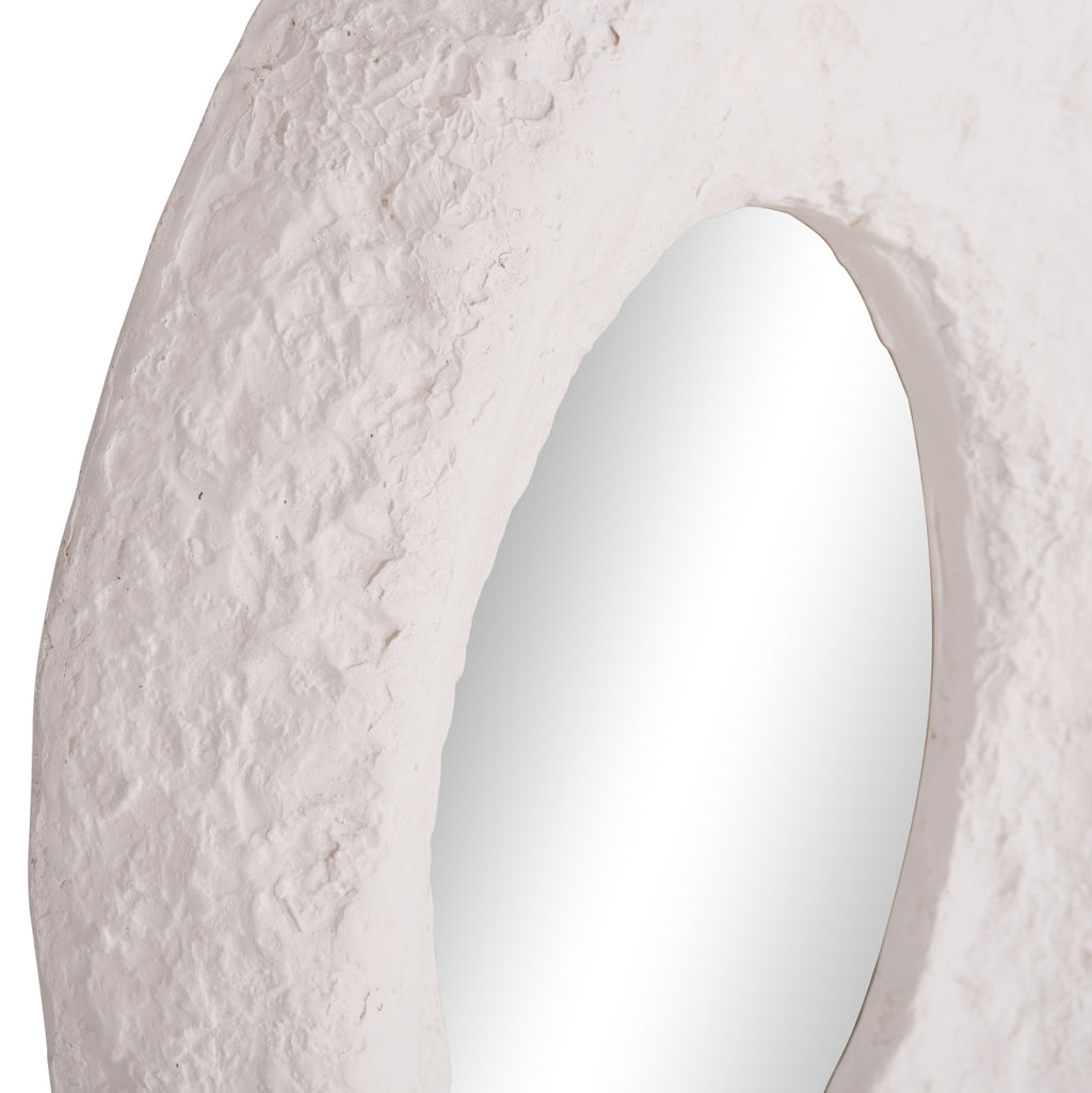 Ръчно изработеното стенно огледало RIFFE има неправилен, но модерен дизайн. Изработено е изцяло от фиброцимент в БЯЛ цвят и е идеално допълнение/аксесоар както за дома, така и за професионални пространства, като хотели, AirBnB и др.