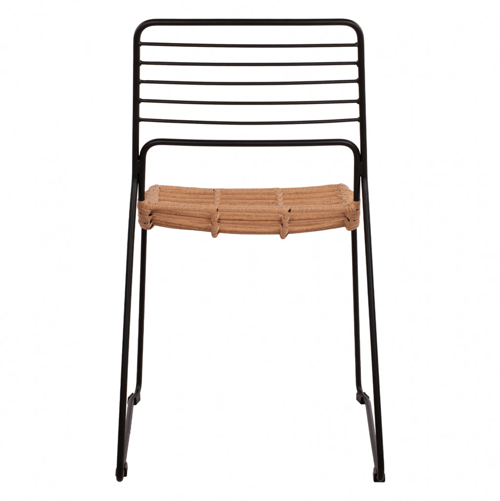 Модерен стол с облегалка, както на открито, така и на закрито, изработен от черна метална конструкция и крака от масивно желязо и покрит с бежова плетена ракита. Ракитата има голяма устойчивост на високи и ниски температури от (-85c до +85c.), обогатена е и с UV стабилизатор за слънчевите лъчи. Идеален за трапезария, но и за вашия дом, той ще ви даде комфорт и почивка. Размери: 51x54x83H см. Височина на седалката: 46 см. Размери на седалката: 42х39 см.