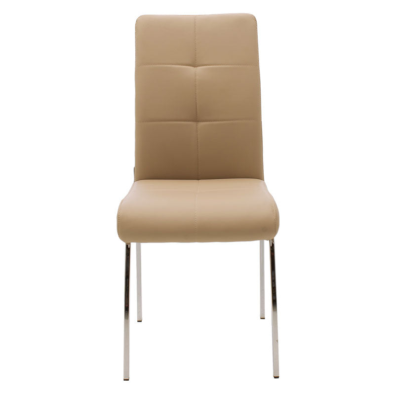 Стол ARIADNE в мока PU с хромиран крак е перфектната комбинация между топъл цвят и модерен дизайн. Качествената PU кожа осигурява комфорт и лесна поддръжка.