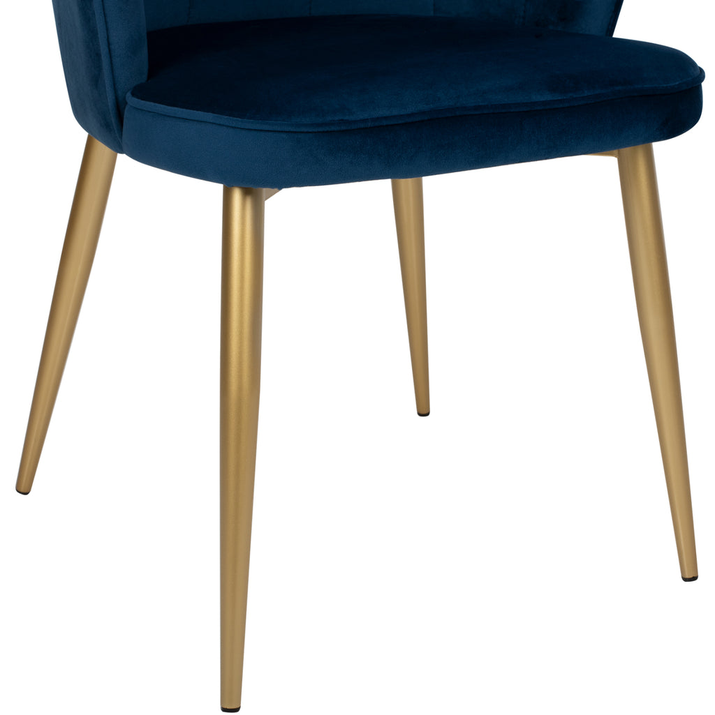 Стол AVI в завладяващ син нюанс със златисти детайли е перфектната комбинация между модерен дизайн и класическа елегантност. Тапициран с луксозна дамаска, той създава усещане за изтънченост и комфорт.