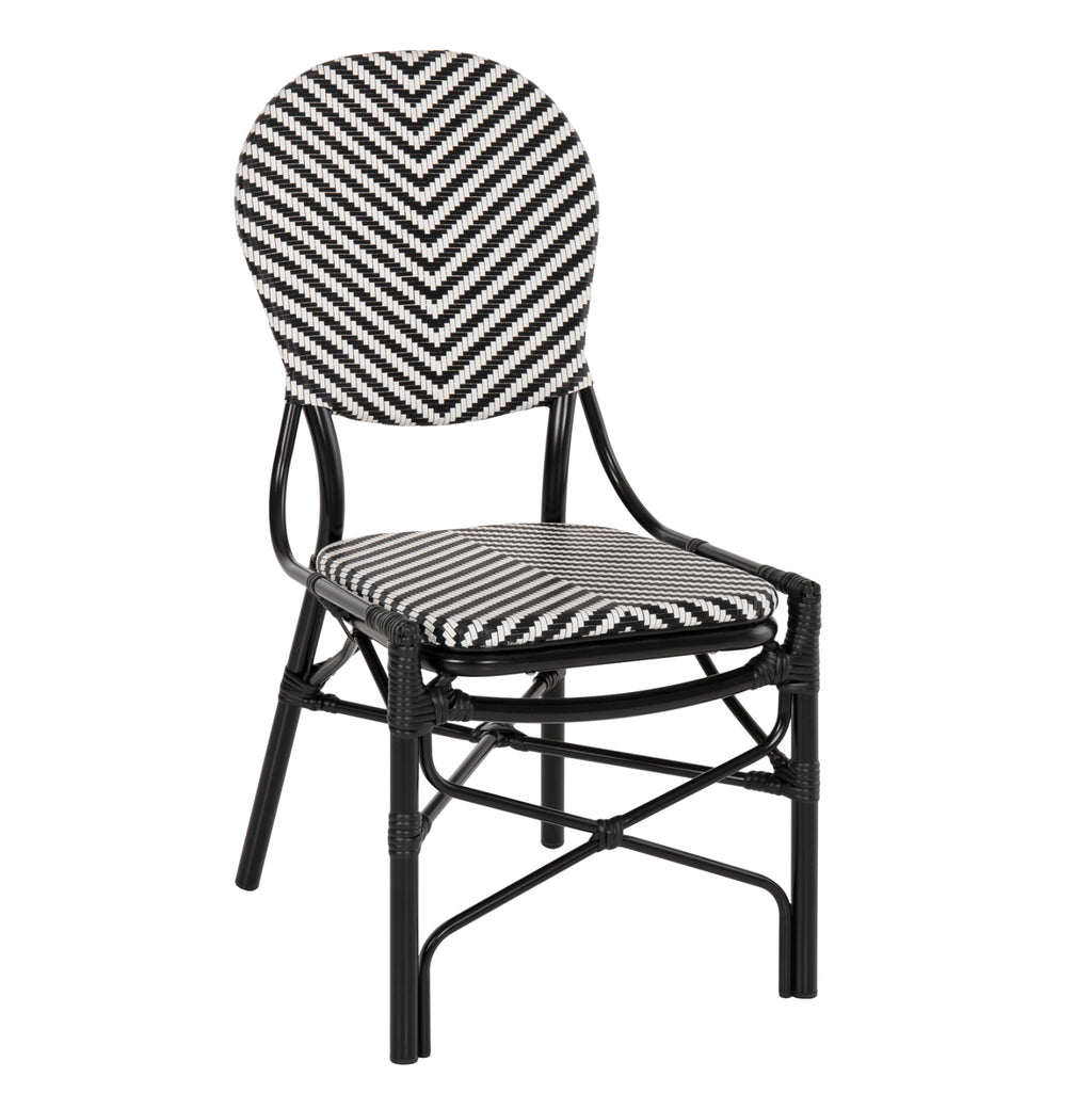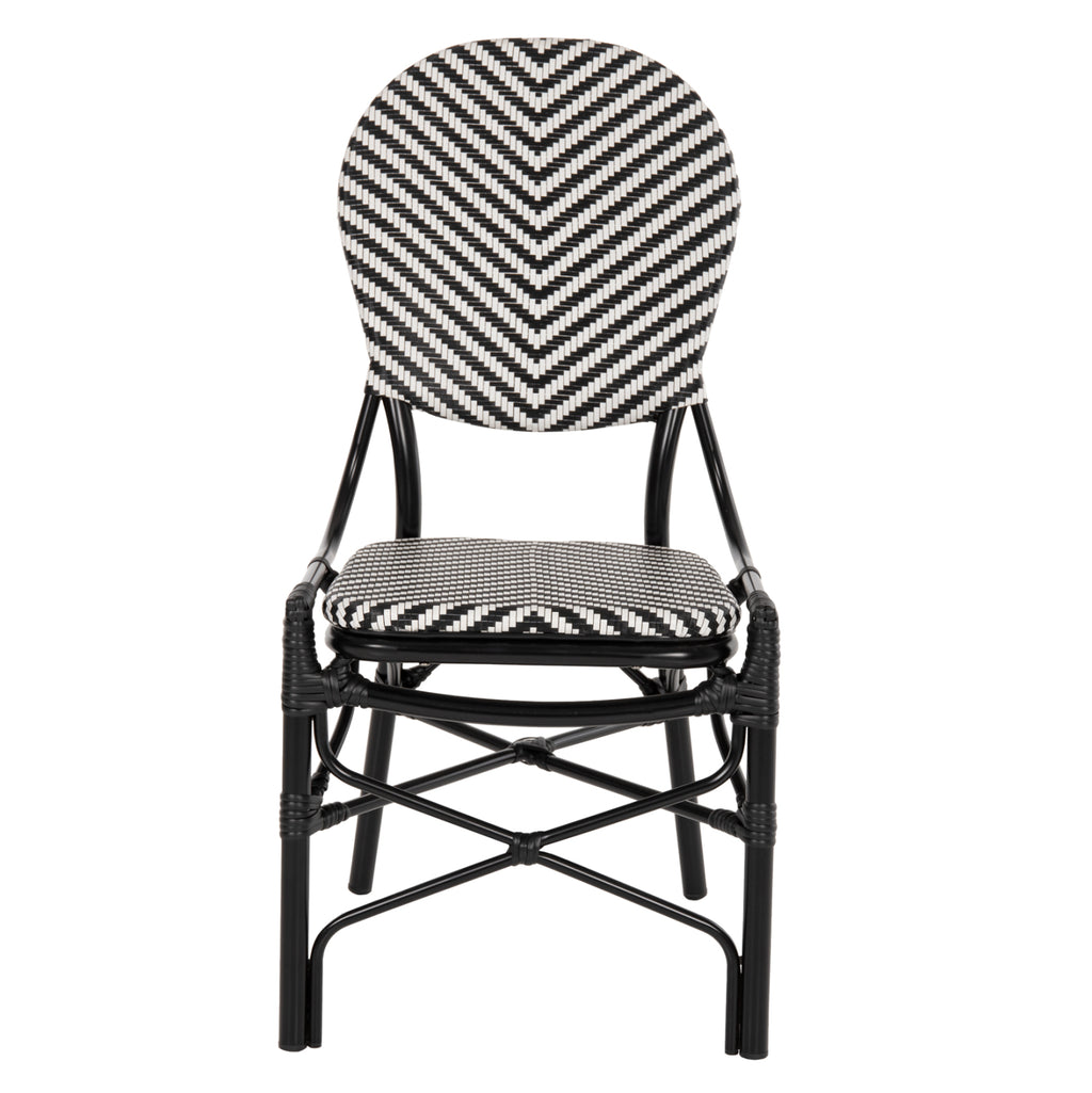 Външният стол ΜΜ5927.01 не остава незабелязан. Красивата ЧЕРНА рамка с връзките на различните й стави е издръжлива, а седалката и облегалката са тапицирани с черен и бял текстил. Вечно и в същото време класическо предложение, което ще допълни и ще се съчетае красиво с много други мебели във вашето външно пространство. РАЗМЕРИ: 46x56x95H см. Височина на седалката: 44,5 см. Размери на седалката: 40х45 см. Размер на гърба: 42х42см. Разстояние между краката: 47х54 см. Алуминиев размер: Φ28x1.5mm КОНСТРУКТИВНИ МАТЕРИАЛИ: Рамката на стола е изработена от алуминий с електростатично боядисване. Алуминият е „зелен“ материал, който може да се рециклира неограничено време, като запазва характеристиките си без влошаване на качеството. Електростатичното боядисване е процес на сухо покритие, използван като метално покритие чрез електростатичен процес, който след това се „свързва“ към метала чрез топлина. Подходящ е както за вътрешни, така и за външни приложения. Тапицерията на облегалката и седалката е изработена от водоустойчив подсилен текстилен плат. Това е дебел, здрав и издръжлив полиестерен плат. Това означава, че е изработен от полиестерни нишки, изтъкани от край до край, и е покрит с PVC. ПОДДРЪЖКА: Столът не се нуждае от много поддръжка благодарение на лесните за употреба и издръжливи материали. В идеалния случай използвайте много мека кърпа или гъба, обилно количество вода и мек почистващ продукт, като препарат за миене на съдове. Няма особени изисквания за поддръжка, тъй като не корозира. Сапунът и водата са достатъчни, за да го поддържате чист и блестящ. ПРЕДИМСТВА: MH5927.01 перфектно съчетава материали като алуминий и текстил, за да подчертае всяко място, което искате да използвате. Големите му предимства са лекото тегло и удобните размери! Това означава, че се транспортира лесно, но също така благодарение на факта, че може да се подрежда, можете да го съхранявате на малки пространства.