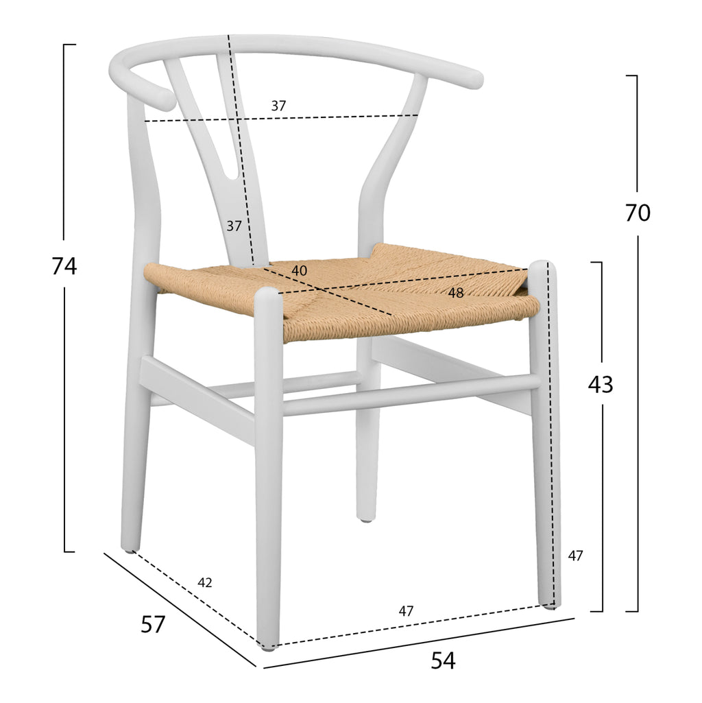 Освежете вашата трапезария с винтидж настроение, на което всеки ще завиди и уникален резултат, който да покажете. Изберете стол, който може да е бил изгубен с времето, но най-накрая е върнат към живота. Стол BRAVE е изработен от високоздрава букова дървесина в бял нюанс със седалка от ръчно изработена въжена оплетка в бежов цвят. Също така е фабрично монтиран и подходящ за оборудване на бизнес помещения. Комбинирайте го с дървена маса със същата естетика и получете трапезарията, която винаги сте искали. Размери: 54х57х74см. Височина на седалката: 43 см. Размери на седалката: 48х40 см. Височина на ръцете: 70 см. Размер на гърба: 37x37H см. Разстояние между краката: 47х42 см. Височина на крака: 47 см. ФАБРИЧНО МОНТАЖЕН