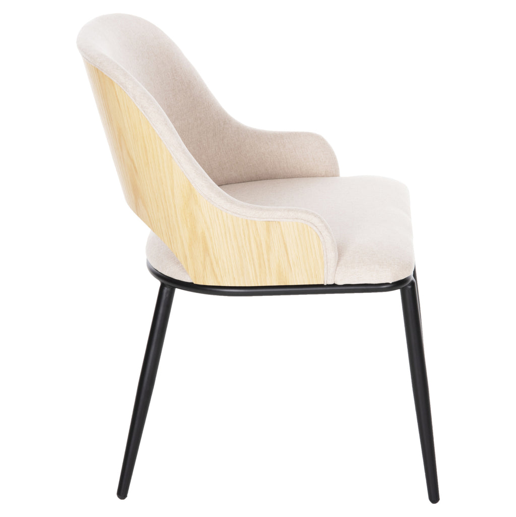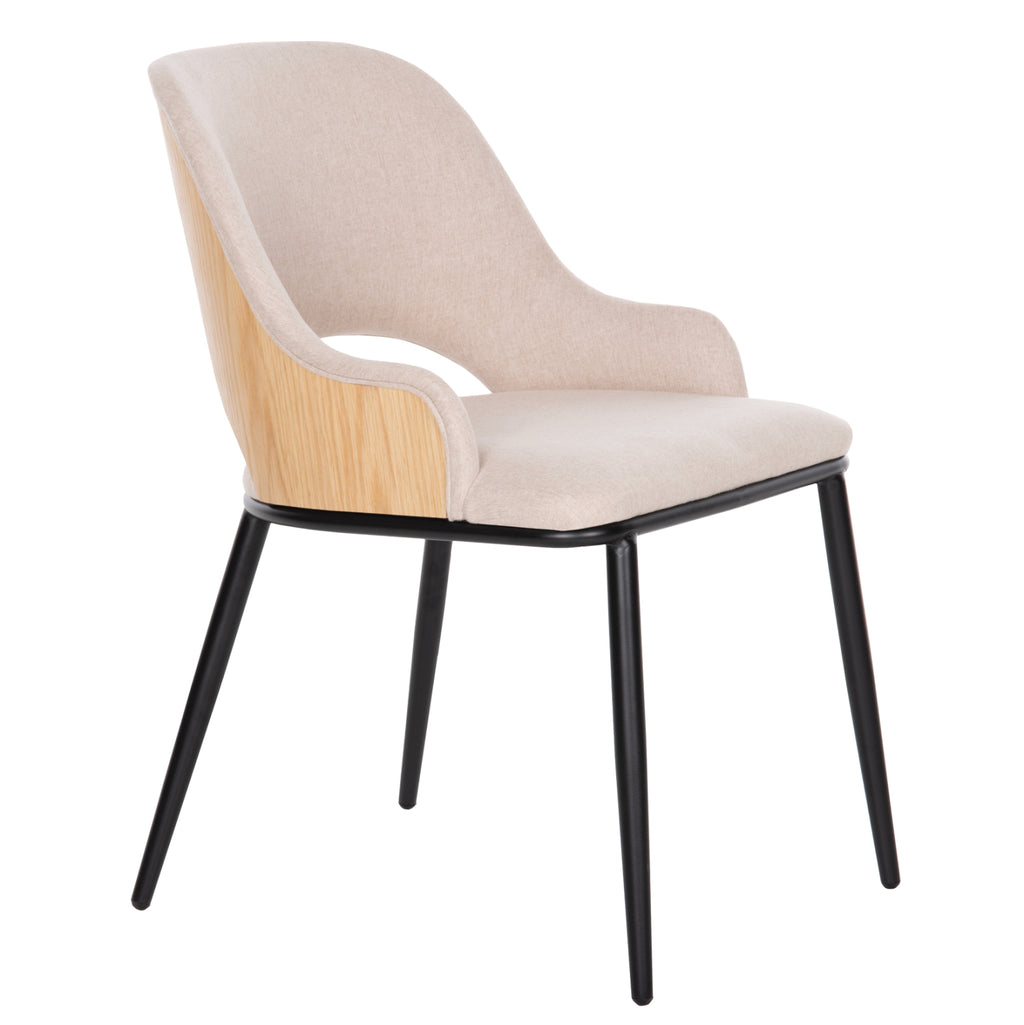 Стол DELF в БЕЖОВ нюанс с дървена облегалка в цвят ДЪБ и ЧЕРНИ метални крака. Дървеният гръб е извит и удобен. Стол, който придава усещане за лукс на всяко пространство. Качественото и елегантно определено ще хване окото. ТЕХНИЧЕСКА ХАРАКТЕРИСТИКА: 48х55х76Н см. Височина на седалката: 45 см. Височина на ръцете: 52 см. Размери на седалката: 37-41x46 см. Размери на гърба: 46х27-35см. Разстояние между краката: 43х53 см. Височина на крака: 39 см. Височина на крачола отзад: 43 см. МАТЕРИАЛ НА ИЗРАБОТКА: Краката са метални с електростатична боя. Електростатичното боядисване е процес на сухо покритие, използван като метално покритие. Електростатичното боядисване е нанасяне на сух прах чрез електростатичен процес, който след това се „свързва“ към метала чрез топлина. Подходящ е както за вътрешни, така и за външни приложения. Цялата тапицерия на стола е изработена от релефна дамаска с отлично качество и издръжливост. Предлага удобно и прохладно изживяване по време на употреба. ПОДДРЪЖКА: Дървената облегалка, както и металните крака на стола се почистват с влажна кърпа лесно и бързо, както и дамаската на тапицерията. ** Цветопредаването на продукта може леко да се различава от неговото фотографско представяне на вашия екран.