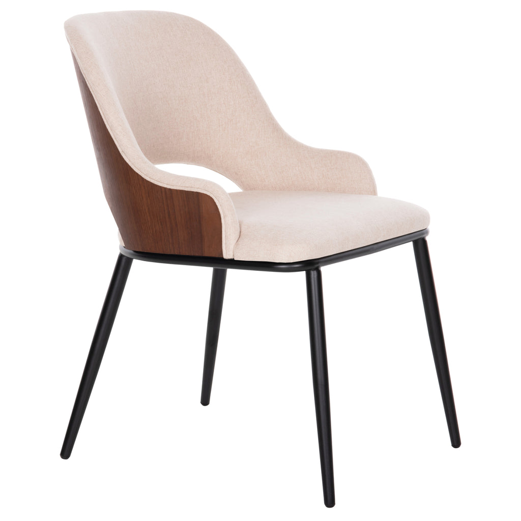 Стол DELF в БЕЖОВ нюанс с дървена облегалка в цвят ОРЕХ и ЧЕРНИ метални крака. Дървеният гръб е извит и удобен. Стол, който придава усещане за лукс на всяко пространство. Качественото и елегантно определено ще хване окото. ТЕХНИЧЕСКА ХАРАКТЕРИСТИКА: 48х55х76Н см. Височина на седалката: 45 см. Височина на ръцете: 52 см. Размери на седалката: 37-41x46 см. Размери на гърба: 46х27-35см. Разстояние между краката: 43х53 см. Височина на крака: 39 см. Височина на крачола отзад: 43 см. МАТЕРИАЛ НА ИЗРАБОТКА: Краката са метални с електростатична боя. Електростатичното боядисване е процес на сухо покритие, използван като метално покритие. Електростатичното боядисване е нанасяне на сух прах чрез електростатичен процес, който след това се „свързва“ към метала чрез топлина. Подходящ е както за вътрешни, така и за външни приложения. Цялата тапицерия на стола е изработена от релефна дамаска с отлично качество и издръжливост. Предлага удобно и прохладно изживяване по време на употреба. ПОДДРЪЖКА: Дървената облегалка, както и металните крака на стола се почистват с влажна кърпа лесно и бързо, както и дамаската на тапицерията. ** Цветопредаването на продукта може леко да се различава от неговото фотографско представяне на вашия екран.