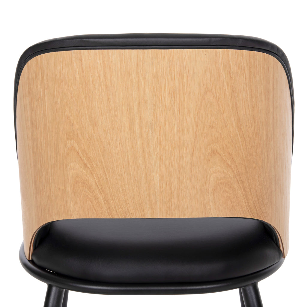 Стол DELF в ЧЕРЕН нюанс с дървена облегалка в НАТУРАЛЕН дървесен цвят и ЧЕРНИ метални крака. Дървеният гръб е извит и удобен. Стол, който придава усещане за лукс на всяко пространство. Качественото и елегантно определено ще хване окото. ТЕХНИЧЕСКА ХАРАКТЕРИСТИКА: 48х55х76Н см. Височина на седалката: 45 см. Височина на ръцете: 52 см. Размери на седалката: 37-41x46 см. Размери на гърба: 46х27-35см. Разстояние между краката: 43х53 см. Височина на крака: 39 см. Височина на крачола отзад: 43 см. МАТЕРИАЛ НА ИЗРАБОТКА: Краката са метални с електростатична боя. Електростатичното боядисване е процес на сухо покритие, използван като метално покритие. Електростатичното боядисване е нанасяне на сух прах чрез електростатичен процес, който след това се „свързва“ към метала чрез топлина. Подходящ е както за вътрешни, така и за външни приложения. Цялата тапицерия на стола е изработена от PU кожа с високо качество и отлична издръжливост. Това е синтетичен материал и е еволюцията на изкуствената кожа, но с основната характеристика, че не се различава лесно от окото от истинската кожа. ПОДДРЪЖКА: Не е необходима специална поддръжка, тъй като PU не се износва лесно, не показва "стрии" и цветът не се влияе от слънчева светлина. Едно минаване с мека влажна кърпа е достатъчно. Ако има петно, което не излиза с мокра кърпа, тогава се използва само мек препарат с неутрално действие. Дървената облегалка, както и металните крака на стола се почистват лесно и бързо с мокра кърпа. ** Цветопредаването на продукта може леко да се различава от неговото фотографско представяне на вашия екран.