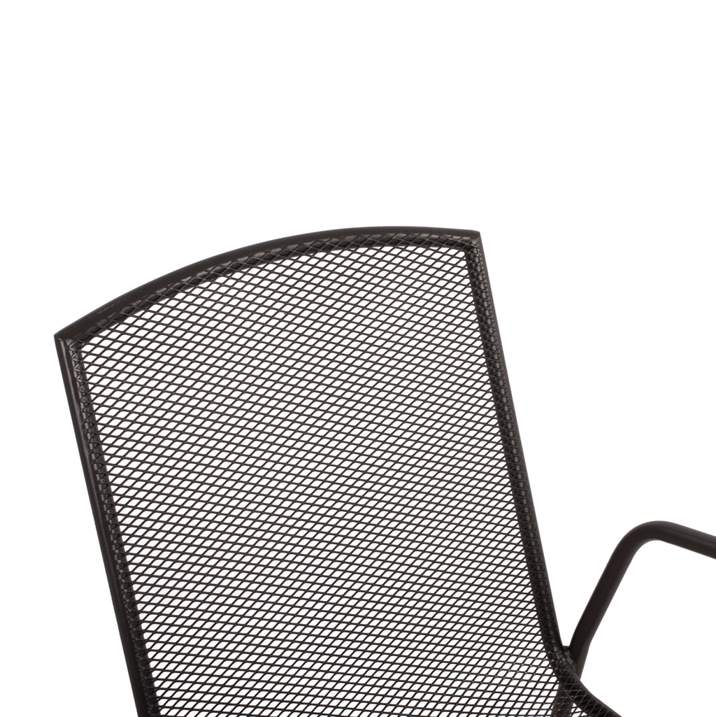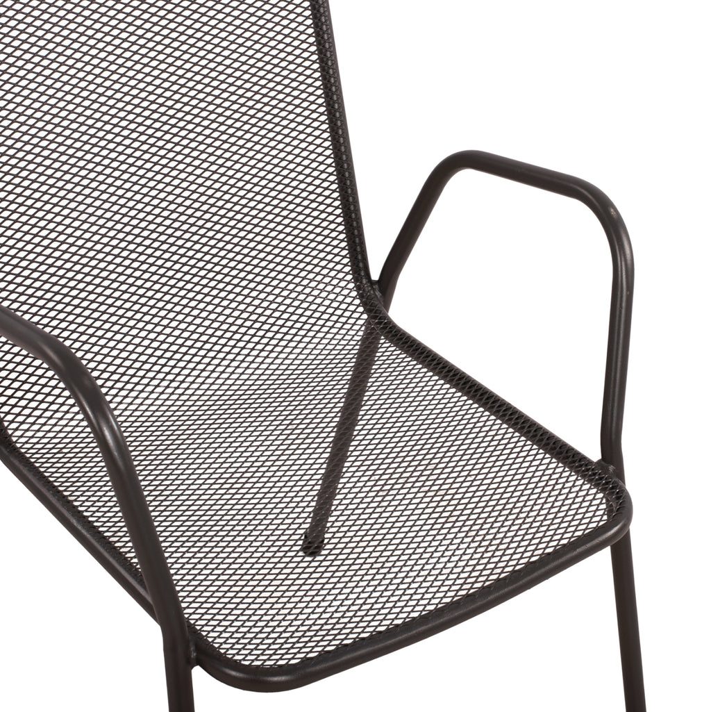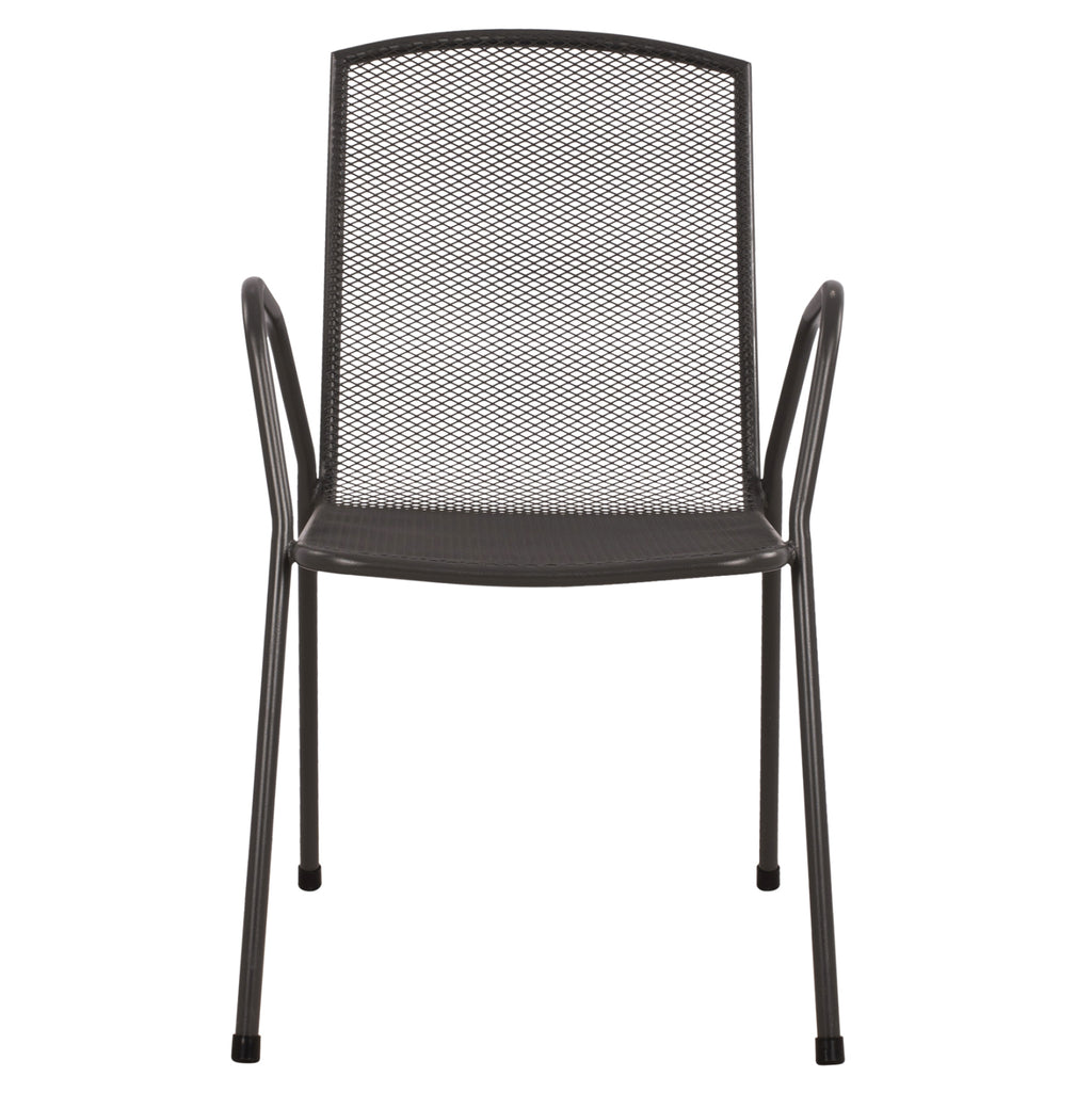 Металните мебели определено са най-класическият и вечен избор. Ако искате да декорирате балкона си според последната мода, можете просто да се доверите на инстинкта си и да създадете тераса или градина, която да харесате на вас и вашето семейство. Метален фотьойл за външно пространство. Основата и седалката на стола са изработени от метална мрежа. Здраво и издръжливо кресло, идеално за външни пространства. Цвят: Въглен Размери: 54x62x89H см. Височина на седалката: 45 см. Височина на ръцете: 66 см. Размери на седалката: 43х42 см.