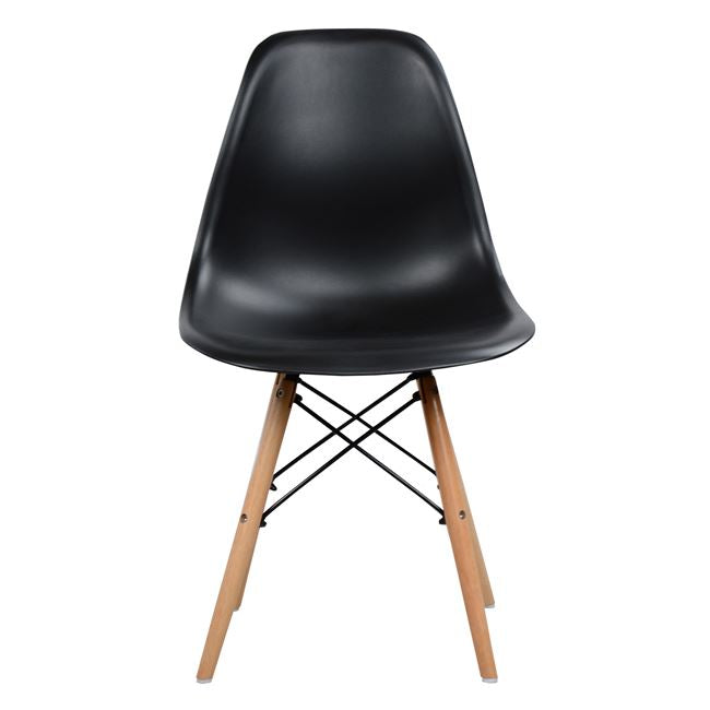 Модерен стол от дървена конструкция и черна полипропиленова седалка. Краката на стола са изработени от масивно дърво в естествен нюанс. В каквато и стая да го постави човек, той ще намери своята полза. Столът е подходящ за домашна употреба. Размери: 46х50х82см. Височина на седалката: 44 см. Размери на седалката: 46х40 см. ВНИМАНИЕ: Продуктът се предлага разглобен в опаковка от четири броя и се продава по 4 броя.