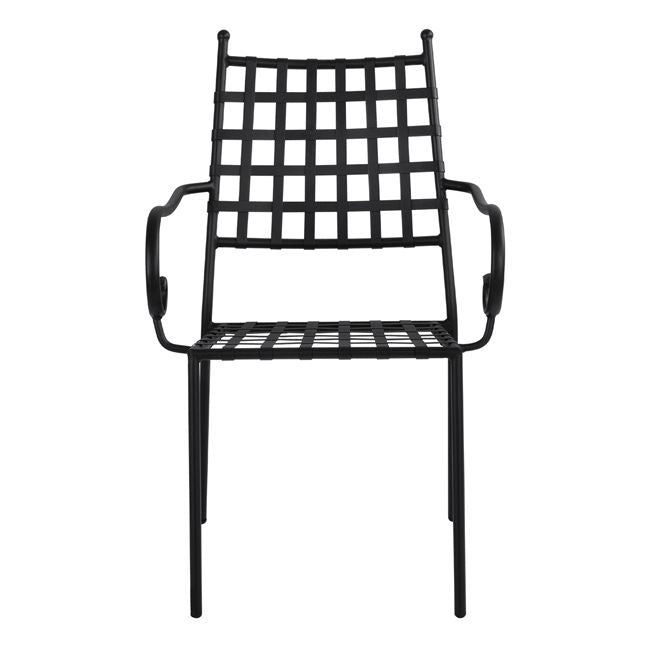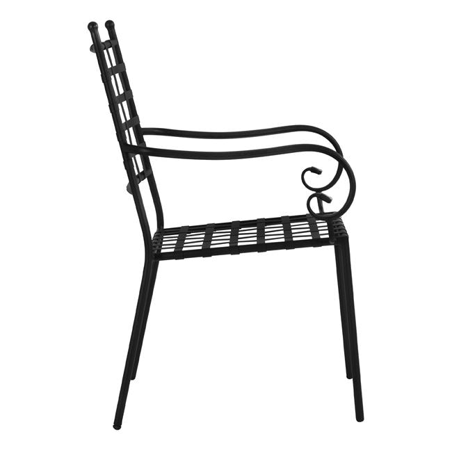 Металните мебели определено са най-класическият и вечен избор. Ако искате да декорирате балкона си според най-новата мода, можете просто да се доверите на инстинктите си, като създадете тераса или градина, която ще ви хареса, създавайки най-красивата и релаксираща среда за вас и вашето семейство. Здрав и издръжлив стол - фотьойл, идеален за външни пространства. Цвят: Черен Размери: 57х60х92см. Височина на седалката: 44 см. Височина на ръцете: 65см. Размери на седалката: 44х47 см.
