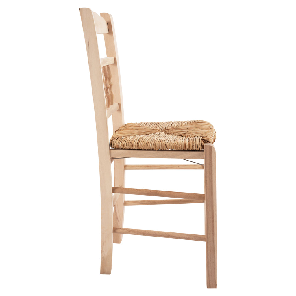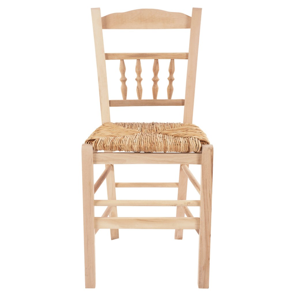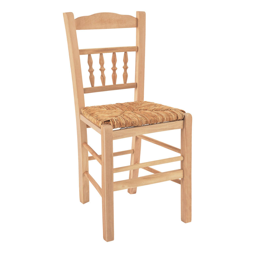 Традиционен кафе стол от небоядисана букова дървесина и мат.