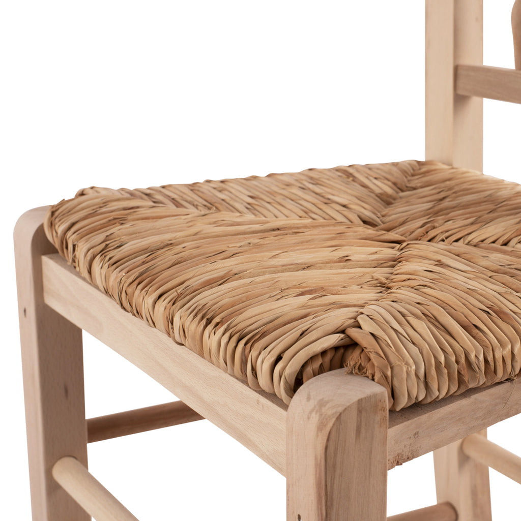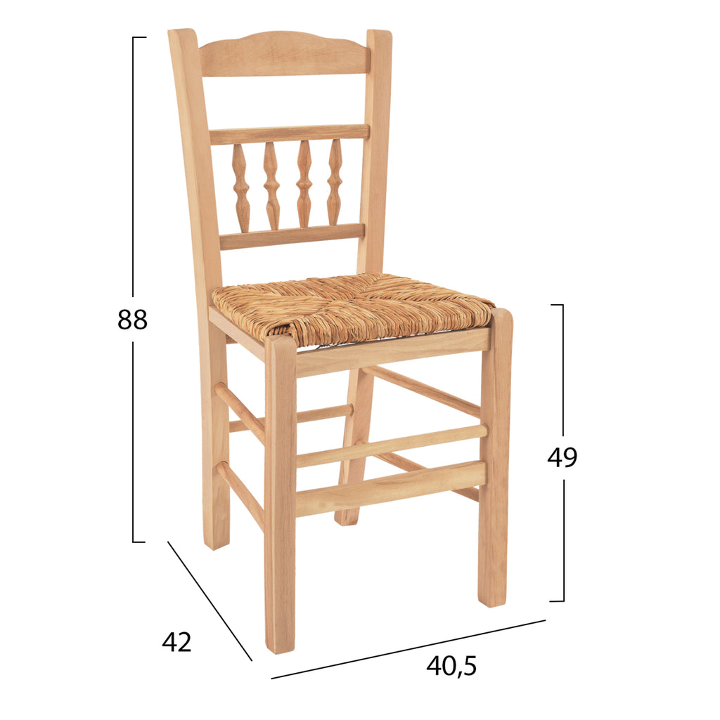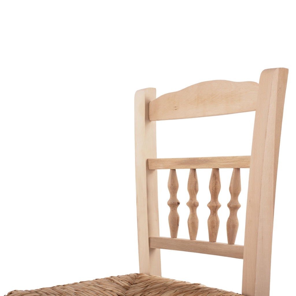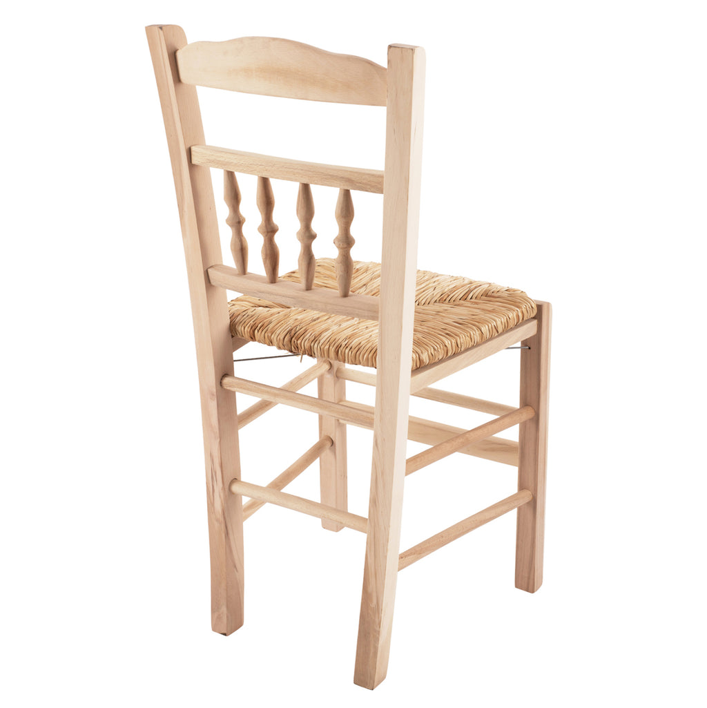 Традиционен кафе стол от небоядисана букова дървесина и мат.