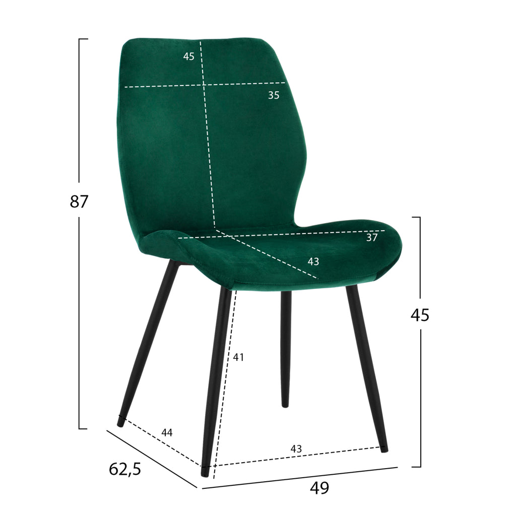 Столът Klay е изработен от черна метална конструкция и тапициран с кадифена дамаска в нюанс кипарис. Нотка елегантност, съчетана с безброй цветови вариации и форми. Леко лъскавата материя с нейния неповторим вид и усещане не без причина е една от живите тенденции par excellence. Плюшеното покритие прави всичко различно! Размери: 49x62.5x87H см. Височина на седалката: 45 см. Размери на седалката: 37х43 см. Размер на гърба: 35x45H см. Височина на крака: 41 см. Разстояние между краката: 43х44 см.