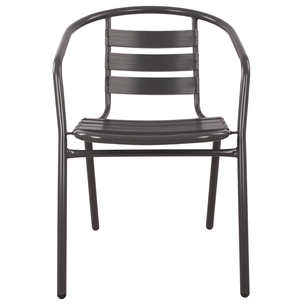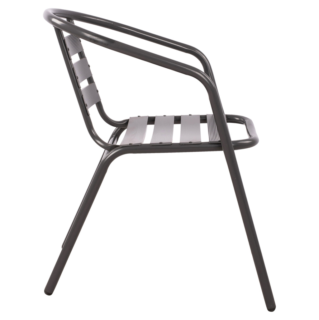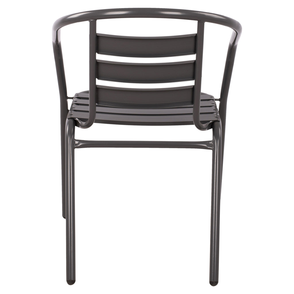 Кресло LAURA, метално с алуминиеви лайсни на основата и облегалката, много издръжливо за външни и вътрешни пространства. Цвят: Тъмно сив Размери: 54x59x73H см. Височина на седалката: 44 см. Височина на ръцете: 62 см. Размери на седалката: 42х36 см. Метална рамка: Φ25x0.8mm дебелина.