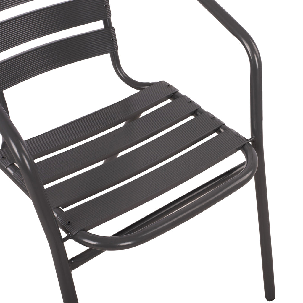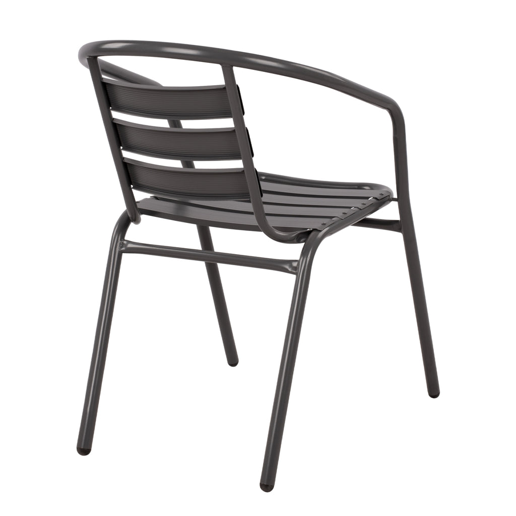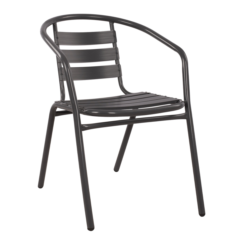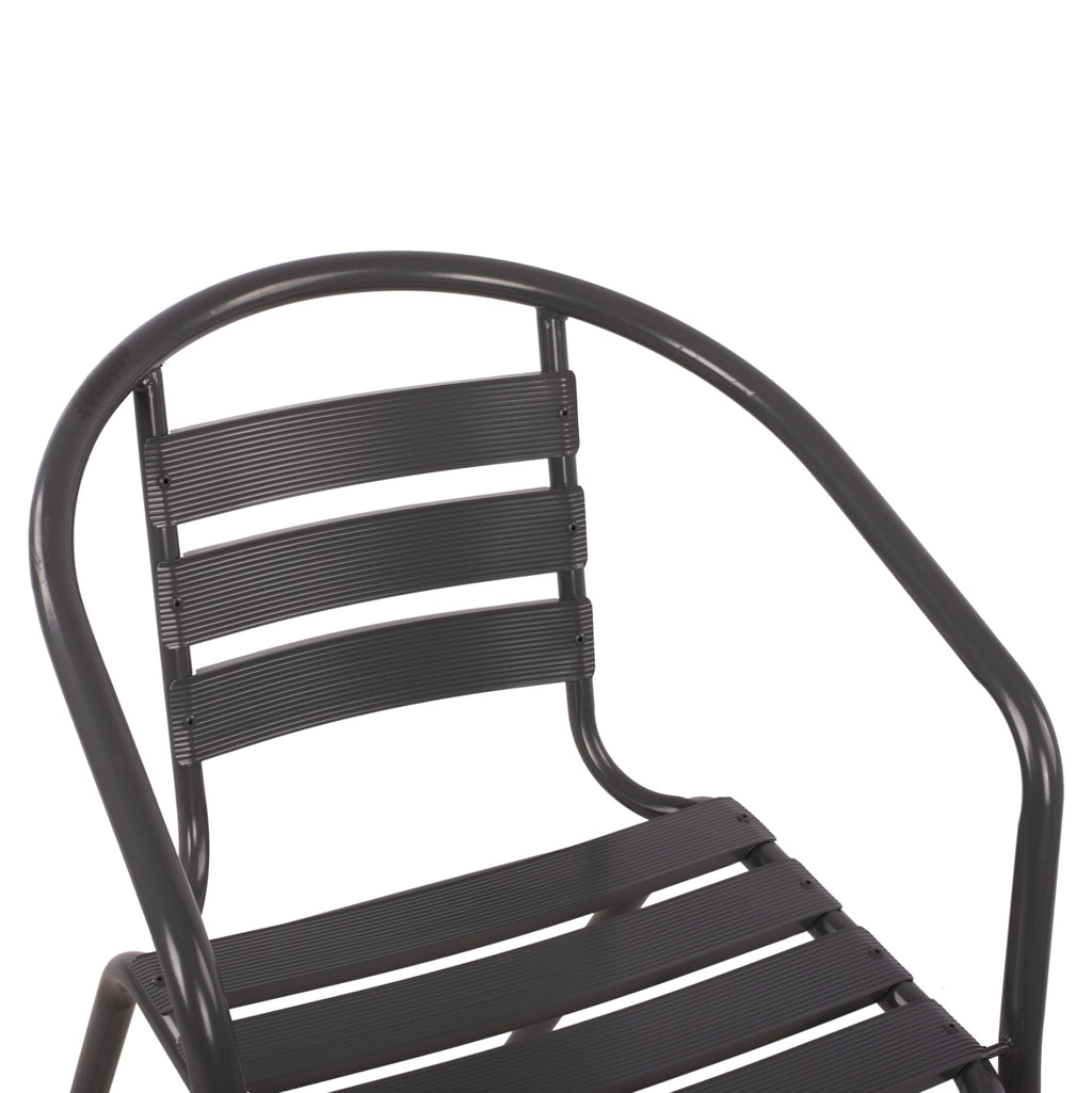 Кресло LAURA, метално с алуминиеви лайсни на основата и облегалката, много издръжливо за външни и вътрешни пространства. Цвят: Тъмно сив Размери: 54x59x73H см. Височина на седалката: 44 см. Височина на ръцете: 62 см. Размери на седалката: 42х36 см. Метална рамка: Φ25x0.8mm дебелина.
