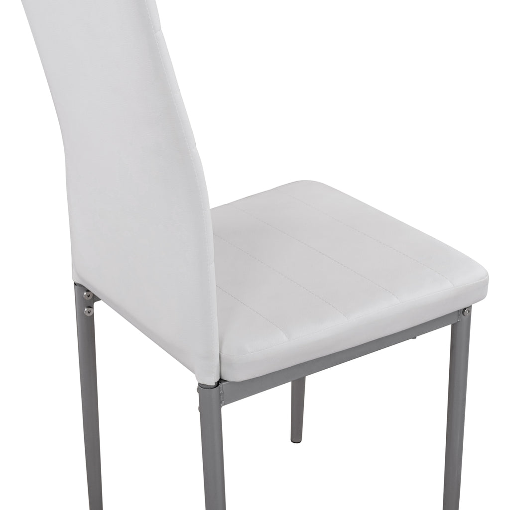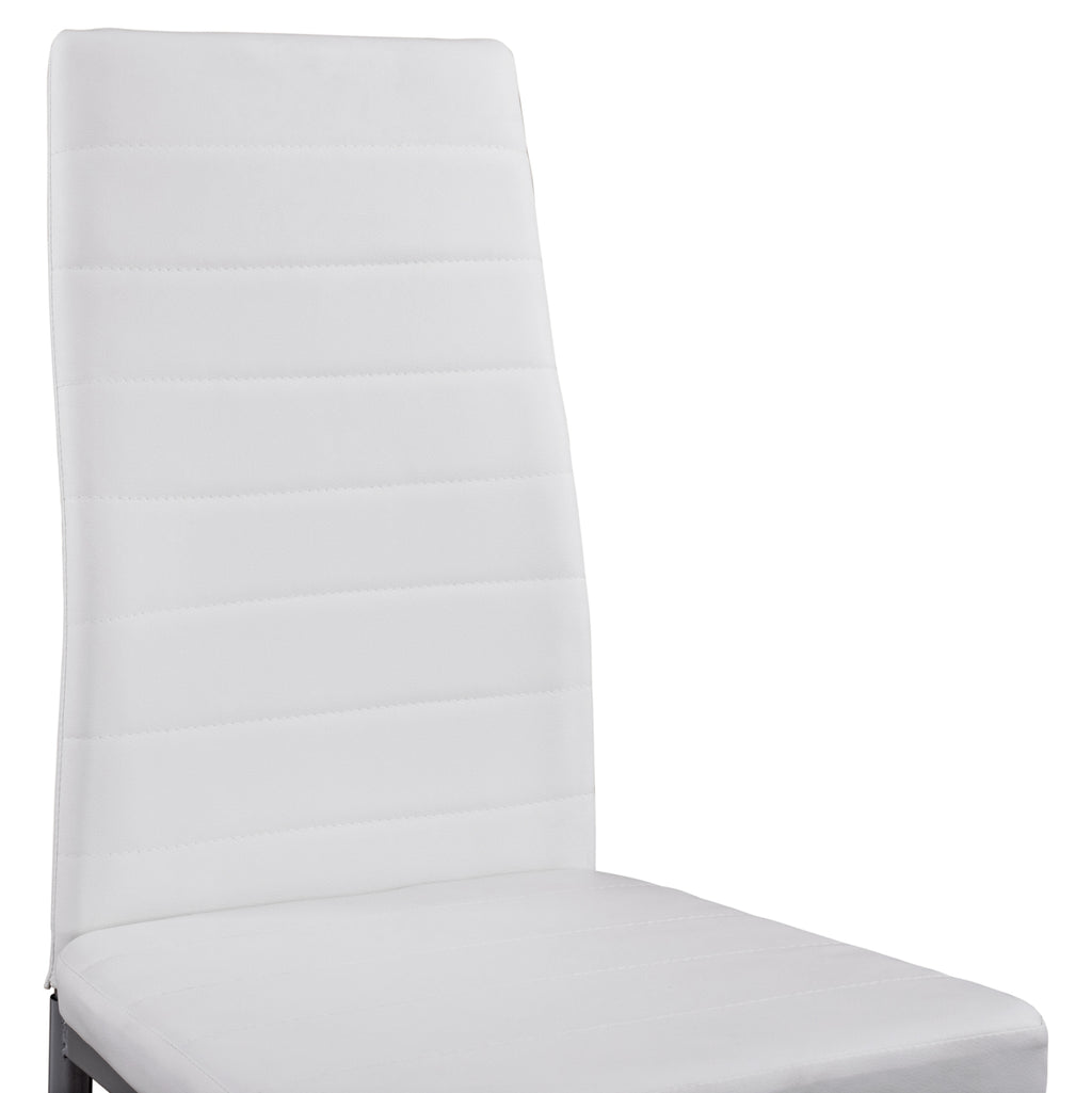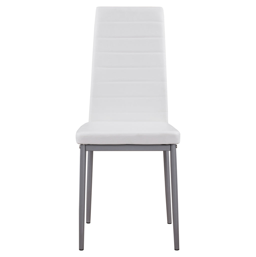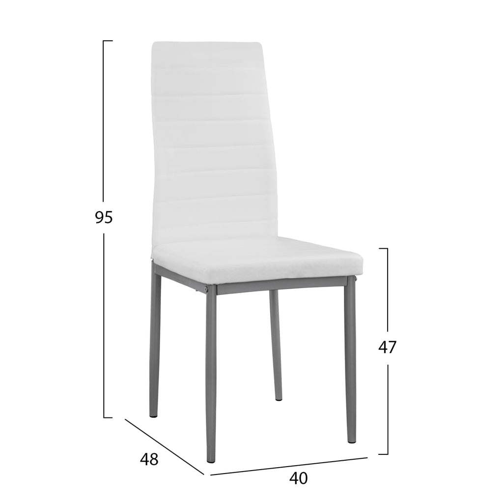 Кухненски стол от сива метална конструкция и бяла кожена тапицерия. Размери: 40х48х95см. Височина на седалката 47см. Размери на седалката: 40х40 см. ВНИМАНИЕ: Продуктът се предлага разглобен в опаковка от четири броя и се продава по 4 броя.