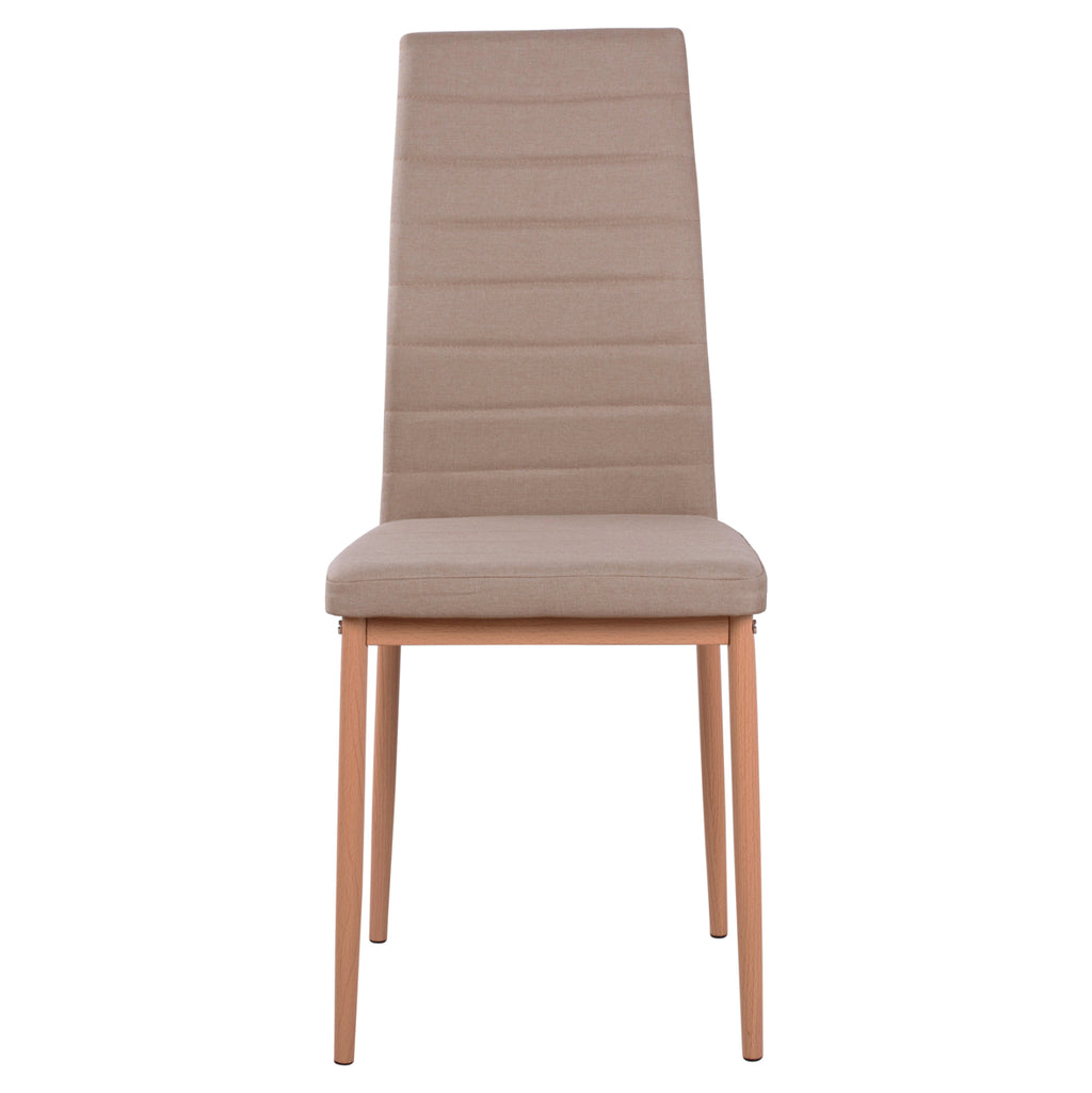 Кухненски стол изработен от метална конструкция с изпълнение в естествен цвят на дърво и тапицерия от дамаска в бежов цвят. Размери: 40х48х95см. Височина на седалката 47см. Размери на седалката: 40х40 см. ВНИМАНИЕ: Продуктът се предлага разглобен в опаковка от четири броя и се продава по 4 броя.