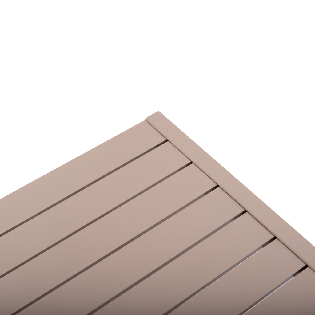 Изработена от 100% алуминий с електростатично прахово боядисване, масата BELLING е устойчива на корозия, влага и UV-лъчи. Това я прави изключително подходяща за употреба на открито, независимо от климатичните условия. Цветът „шампанско мат“ ѝ придава елегантен и изискан вид, който лесно се съчетава с останалите мебели от серията.