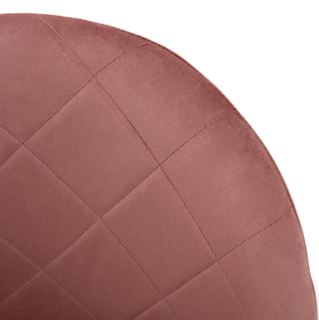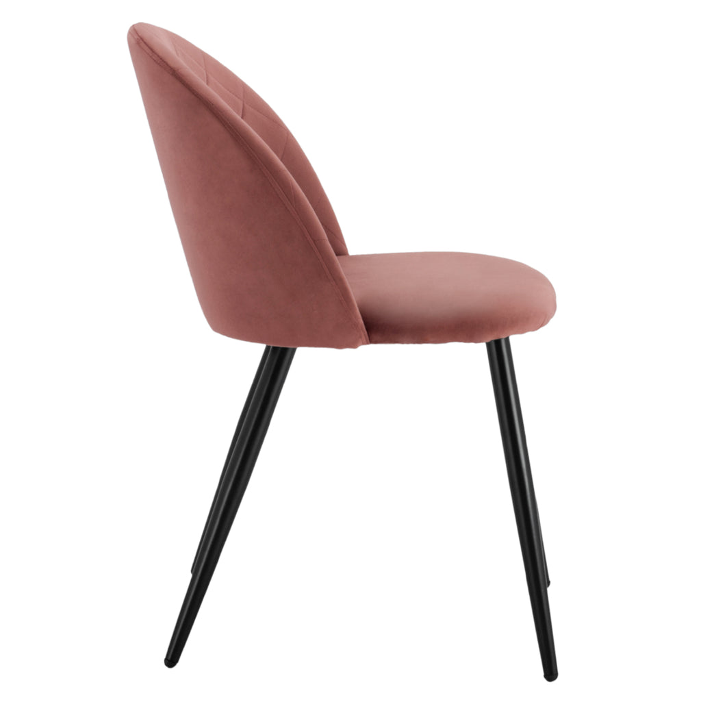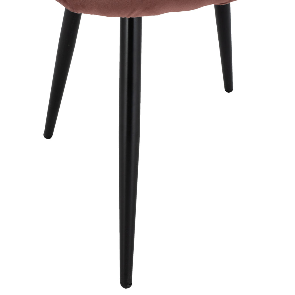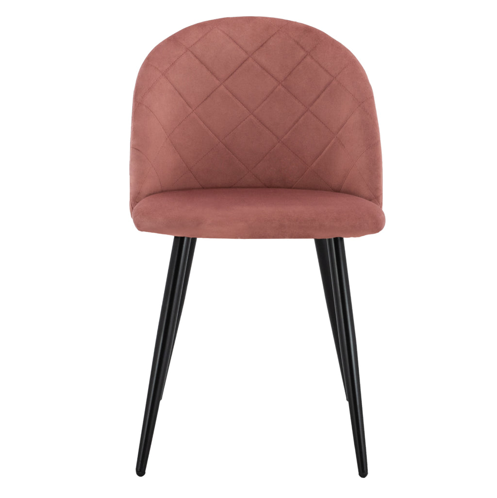 Стол MELANIE в нежен розов нюанс (гнила ябълка) е тапициран с луксозна кадифена дамаска и има черна метална конструкция. Това е стол със специална естетика и дизайн, който става част от декорацията на вашия дом.