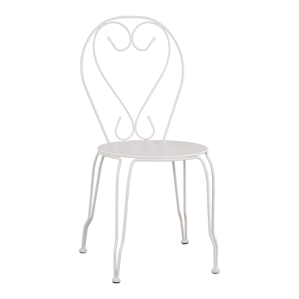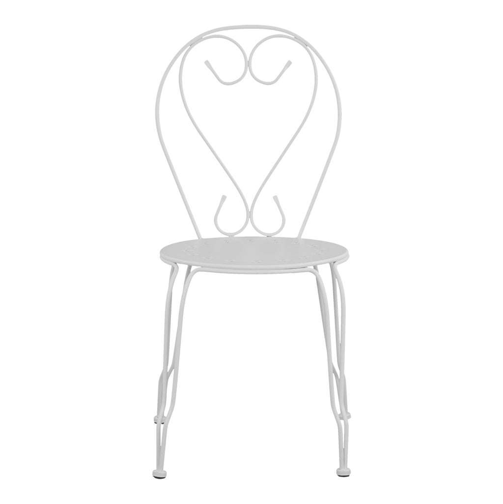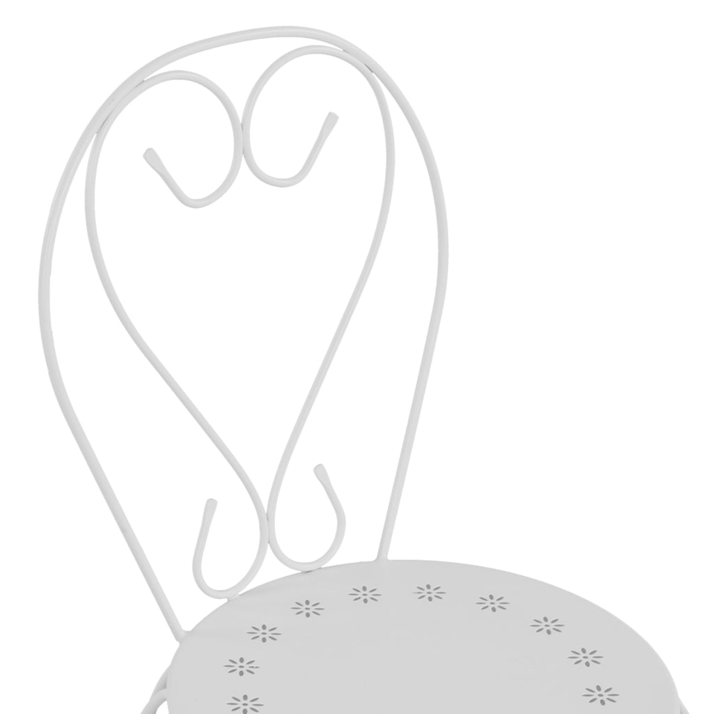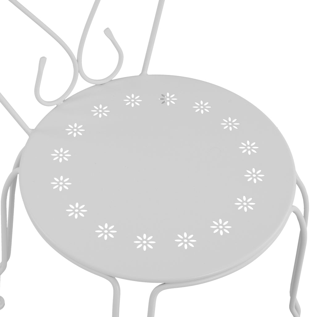 Външен метален стол в бял нюанс с дизайн с цветя на основата. Комбиниране на модерно и класическо заедно в градински стол и др. Изберете го за всяка част от вашия дом или бизнес. Размери: 42х48х90см. Височина на седалката: 43 см. Размери на седалката: Φ40см.