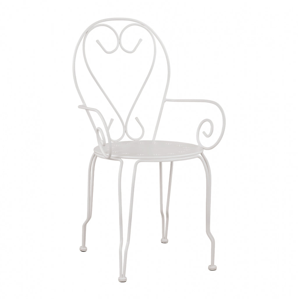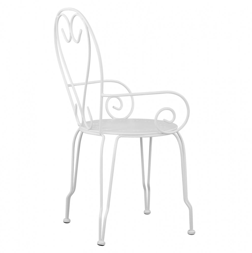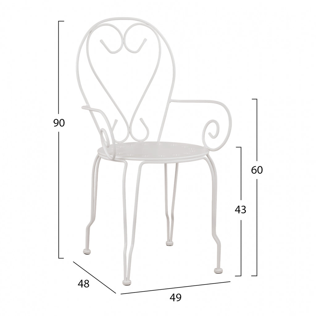 Комбинация от модерен и класически елемент, в изискан метален стол с подлакътници, идеален както за градината, така и за вашата тераса. Изберете го за всяка част от вашия дом, но също и за вашия бизнес район. В основата има дизайн с цветя. Размери: 49х48х90см. Височина на седалката: 43 см. Височина на ръцете: 60см. Размери на седалката: 40х40 см. Цвят: бял