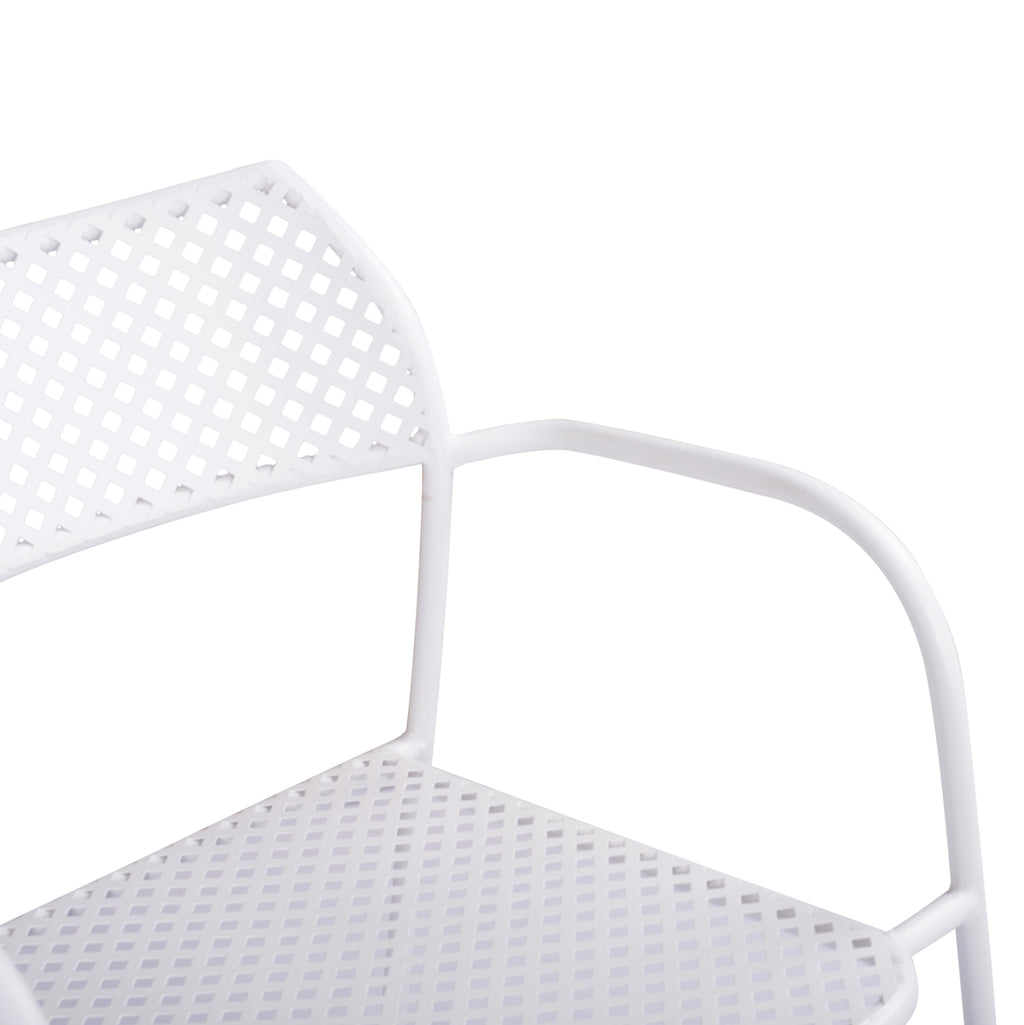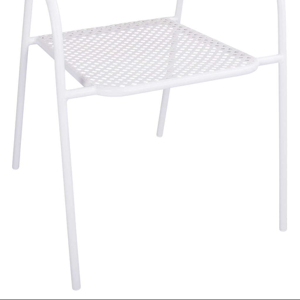 Металните мебели определено са най-класическият и вечен избор. Ако искате да декорирате балкона си според най-новата мода, можете просто да се доверите на инстинктите си, като създадете тераса или градина, която ще ви хареса, създавайки най-красивата и релаксираща среда за вас и вашето семейство. Здраво и издръжливо метално кресло, идеално за външни пространства. Цвят: Бял Размери: 55х57х79 см. Височина на седалката: 44 см. Височина на ръцете: 65 см. Размери на седалката: 40х46 см.