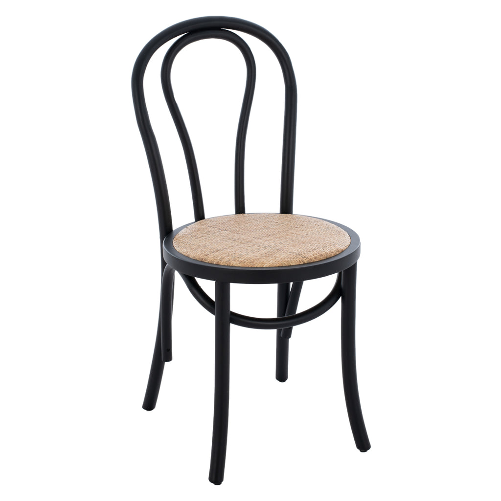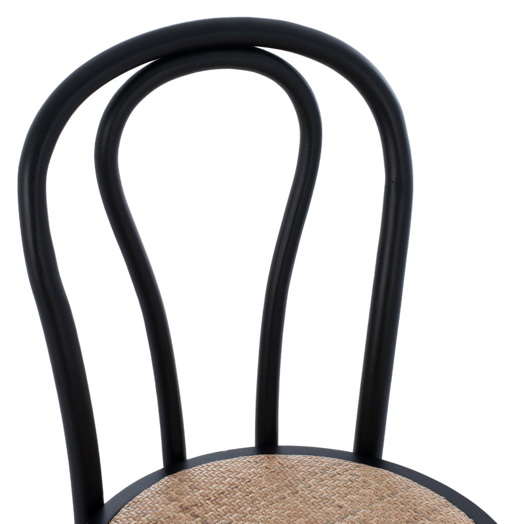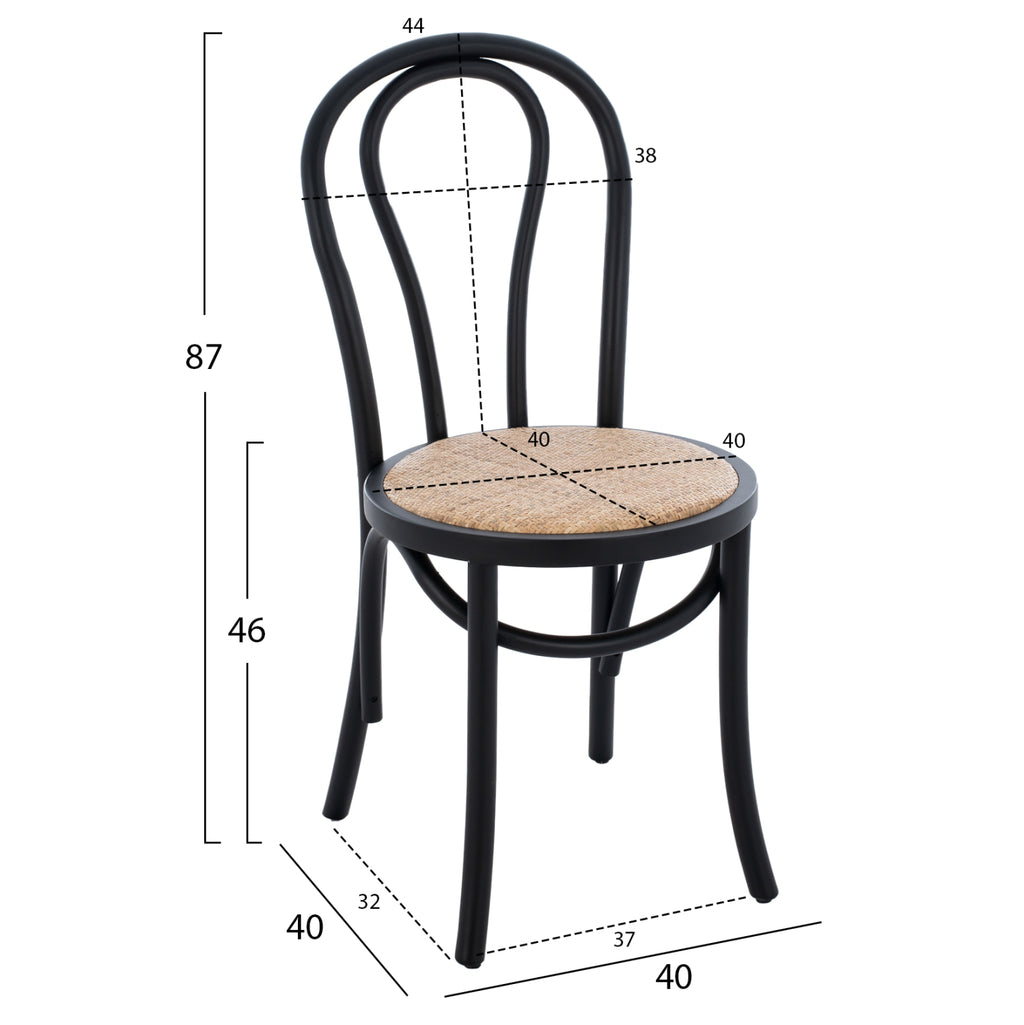 Стол тип Виена в черен нюанс 40х40х87см. Обновете трапезарията или хола на вашето бизнес пространство с ретро стол, изработен от високоздрава букова дървесина и седалка от ратан. Характерно предимство на този стол е фактът, че е фабрично сглобен, което го прави особено стабилен и издръжлив, подходящ и за оборудване на бизнес помещения. Идеален за ресторанти, механи, таверни, бирарии и всякакви заведения за обществено хранене. Размери: 40x40x87H см. Размери на седалката: 40х40 см. Размери на гърба: 38х44см. Височина на седалката: 46 см. Височина на крака: 43 см. Разстояние между краката: 32х37 см. ФАБРИЧНО МОНТАЖЕН