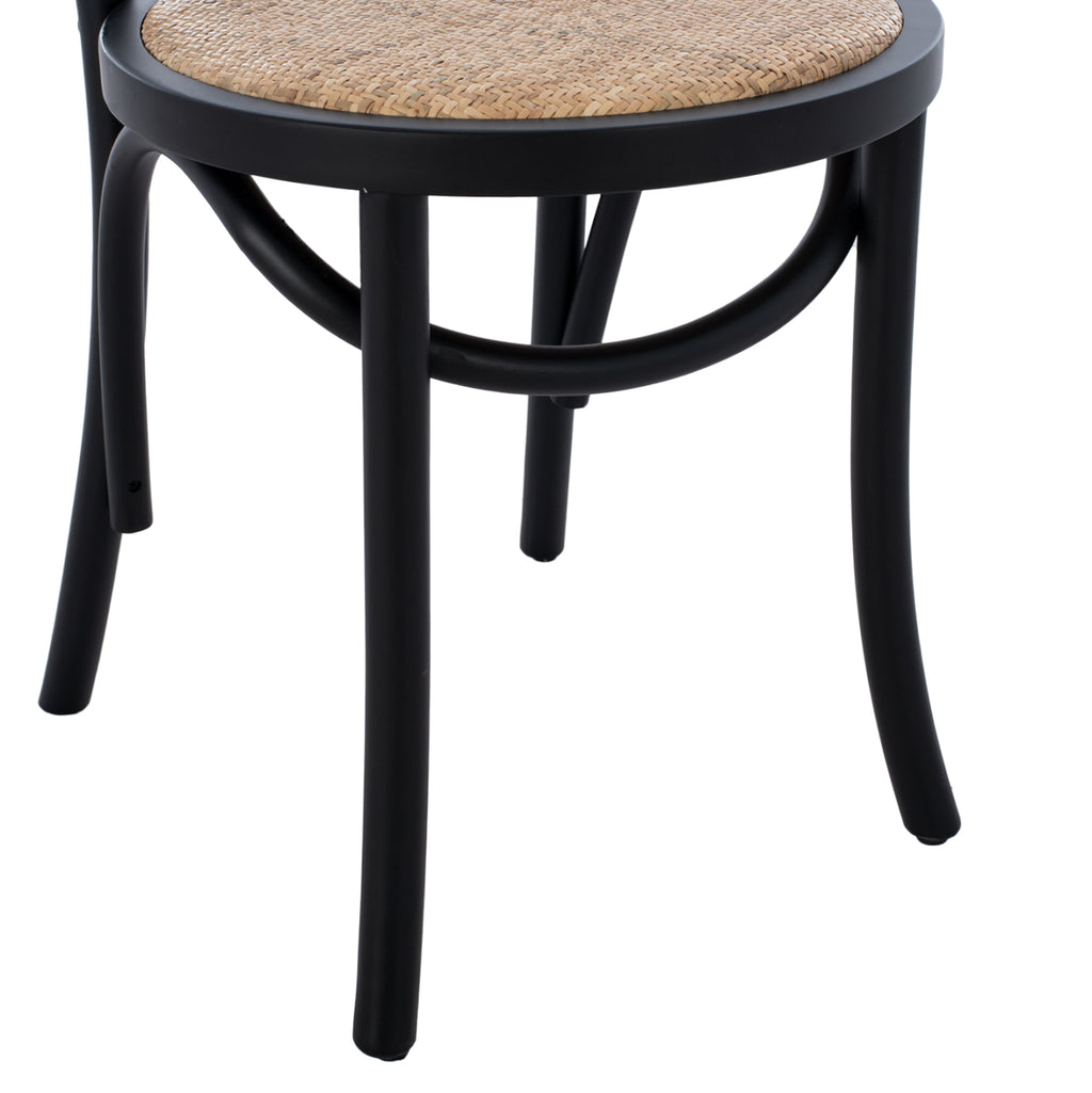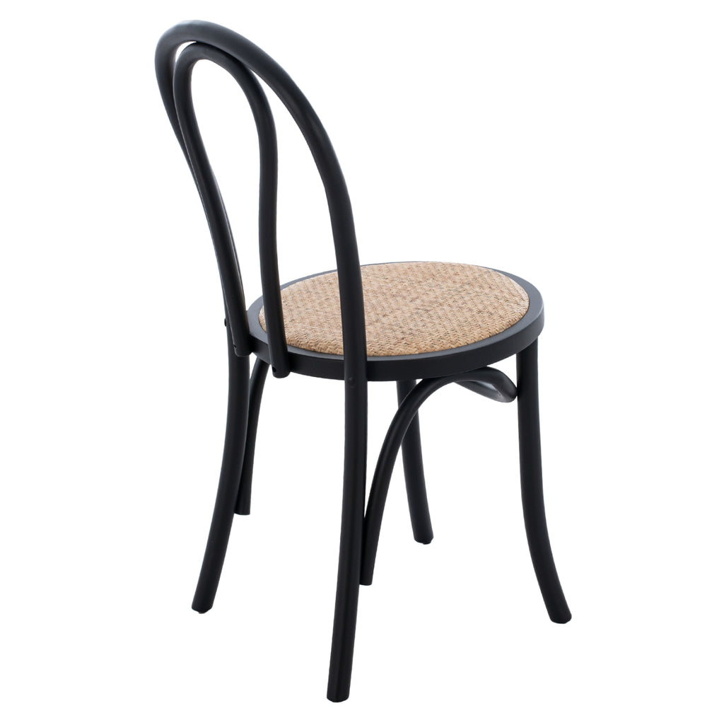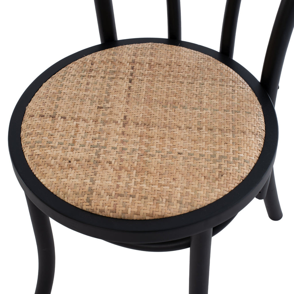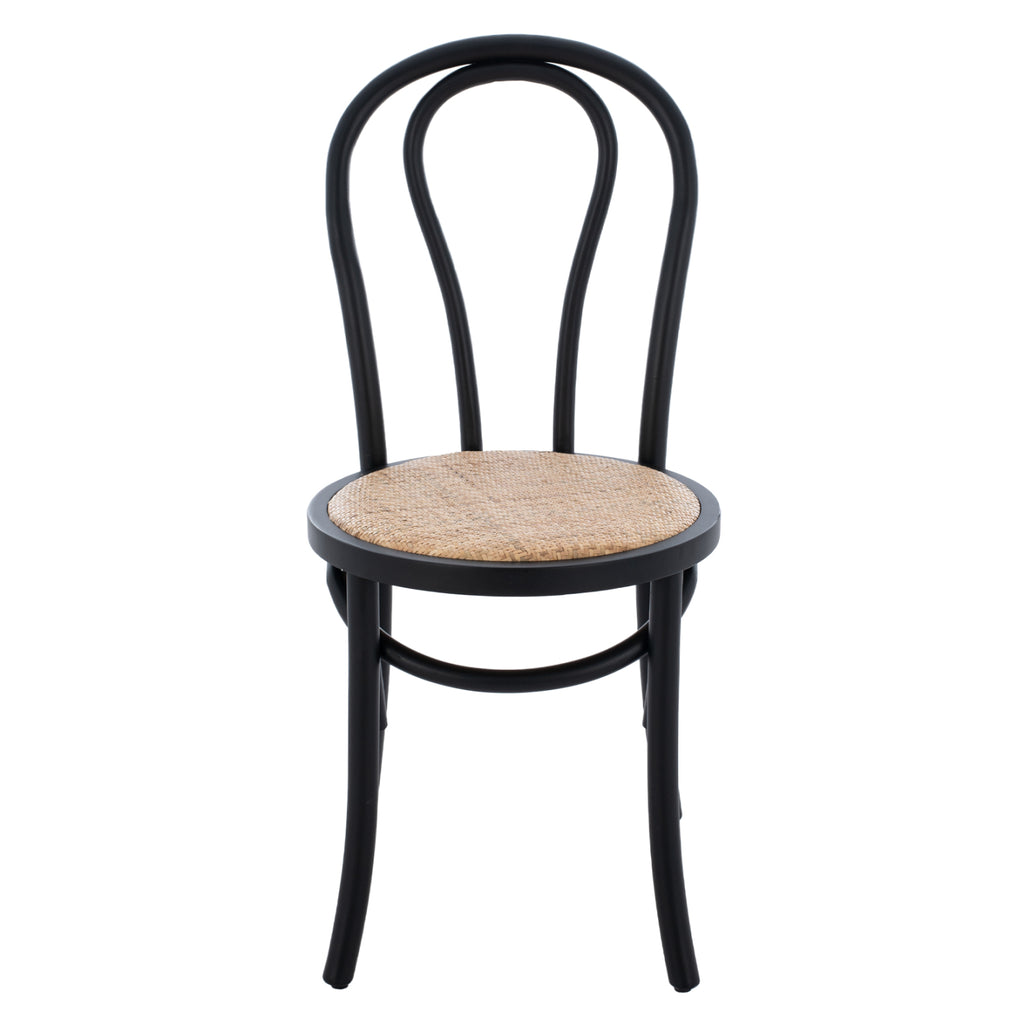 Стол тип Виена в черен нюанс 40х40х87см. Обновете трапезарията или хола на вашето бизнес пространство с ретро стол, изработен от високоздрава букова дървесина и седалка от ратан. Характерно предимство на този стол е фактът, че е фабрично сглобен, което го прави особено стабилен и издръжлив, подходящ и за оборудване на бизнес помещения. Идеален за ресторанти, механи, таверни, бирарии и всякакви заведения за обществено хранене. Размери: 40x40x87H см. Размери на седалката: 40х40 см. Размери на гърба: 38х44см. Височина на седалката: 46 см. Височина на крака: 43 см. Разстояние между краката: 32х37 см. ФАБРИЧНО МОНТАЖЕН